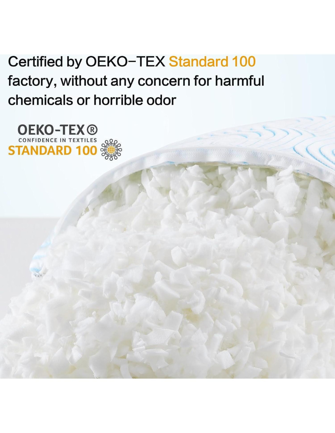 - Materiales Superiores y Seguros: Nuestros cojines están hechos de materiales de alta calidad que son no tóxicos y inofensivos para el cuerpo humano. Certificados por la fábrica OEKO-TEX Standard 100, sin preocupaciones por productos químicos dañinos u olores horribles. Aunque la espuma viscoelástica de cojín fresca puede tener un ligero olor, es completamente normal y se disipará después de uno o dos días de aireación.