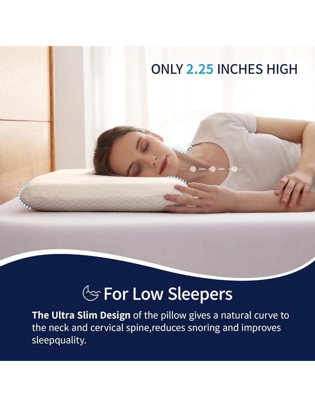 - Diseño Ultra Fino y Ergonómico: Experimenta el equilibrio perfecto de comodidad y soporte con nuestra almohada ultra fina, diseñada específicamente para durmientes de estómago y espalda. Su perfil delgado de 2.75 pulgadas (6.99 cm) y bordes ergonómicos proporcionan una sensación de almohada plana que alinea tu columna mientras ofrece espuma de bajo perfil suave pero de soporte para un sueño reparador.