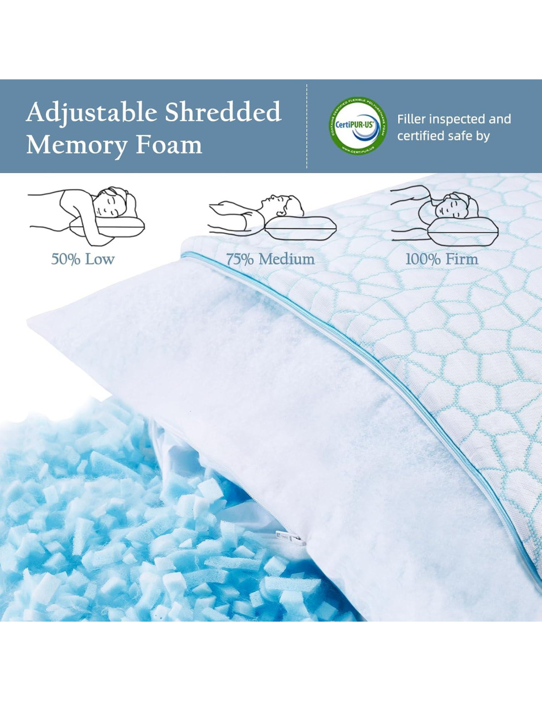 - [Totalmente Ajustable para la Mayoría de los Durmientes] Nuestra almohada de espuma de memoria fresca está diseñada para acunar perfectamente las curvas de tu cabeza y cuello, ofreciendo el equilibrio ideal de suavidad y soporte. Ya seas un durmiente de espalda, de lado o de estómago, esta almohada de soporte para el cuello se adapta a todas tus necesidades: simplemente agrega o quita el relleno de espuma extra incluido en nuestro paquete.