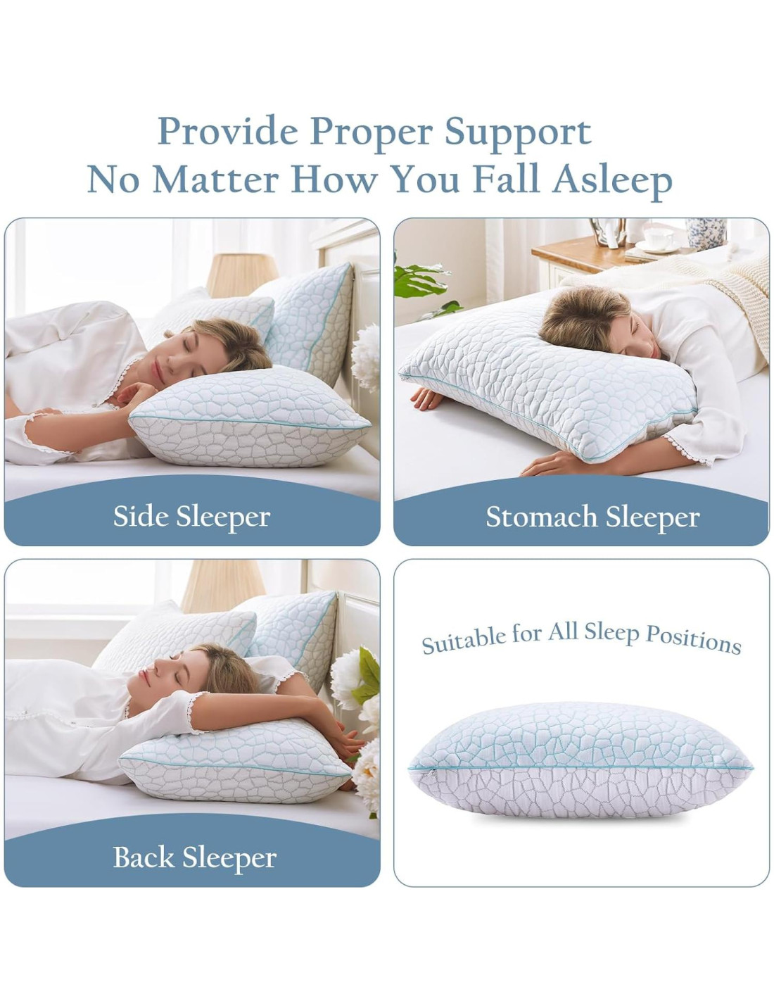 - [Dos Lados Diferentes - Fresco y Acogedor] Descubre dos experiencias de sueño diferentes con nuestra innovadora almohada de espuma de memoria desmenuzada de doble cara. El lado fresco está hecho de un avanzado tejido de enfriamiento PE, diseñado para mantenerte fresco y renovado durante toda la noche. El lado acogedor contiene 35% de Rayón Derivado de Bambú, ofreciendo una sensación suave y transpirable que asegura comodidad. Di adiós a las noches inquietas y hola a la comodidad y frescura personalizadas, todo en una almohada perfecta.