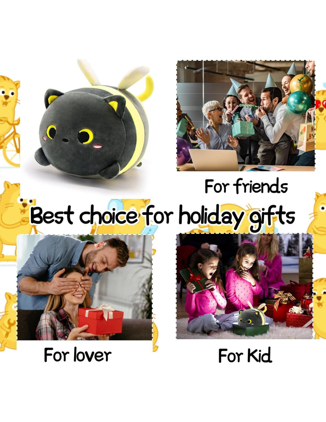 - [Regalo Perfecto] : ¡Una almohada de gato abeja linda que nadie puede resistir porque es realmente linda y suave! Puedes darle un nombre a este lindo juguete de peluche de gato y hacerlo tu compañero más leal. ¡El juguete de peluche de gato Kawaii se puede regalar como regalos de Navidad, cumpleaños, Halloween y otras festividades a tus hijos, familiares o amigos, traerá buena suerte a tu familia y amigos!