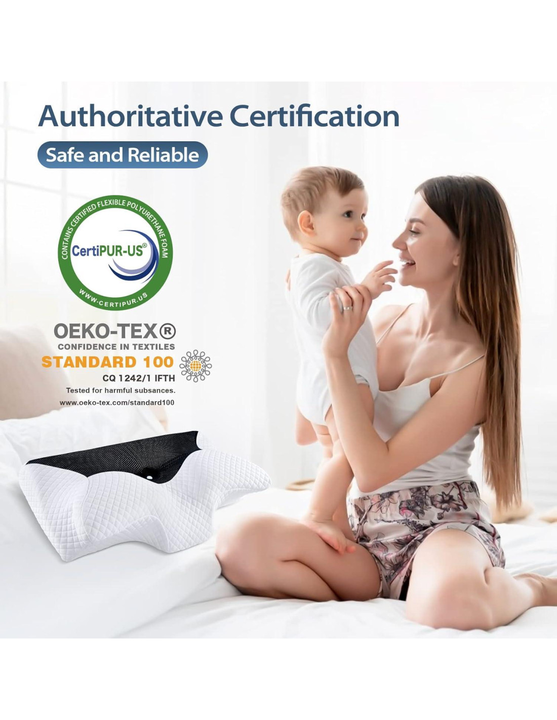 - [Espuma Viscoelástica Premium para un Sueño Reparador] La almohada cervical HOMCA está hecha de espuma viscoelástica de alta calidad certificada por CertiPUR, que puede soportar la cabeza y las vértebras cervicales con buena suavidad. No se deforma incluso después de un uso prolongado y distribuye la presión de manera uniforme sobre la cabeza, manteniendo una condición de sueño cómoda y extendiendo el tiempo de sueño profundo.