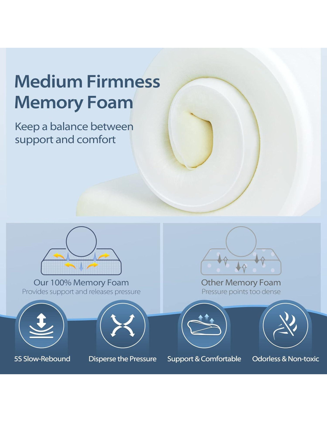 - [Funda Transpirable y Amigable con la Piel] Nuestro núcleo de espuma viscoelástica está envuelto en una funda de almohada de doble capa. La funda exterior tiene una textura fina y una sensación suave con un cierre suave para fácil extracción y limpieza. La funda interior protege el núcleo del polvo y ralentiza la oxidación y endurecimiento del núcleo.
