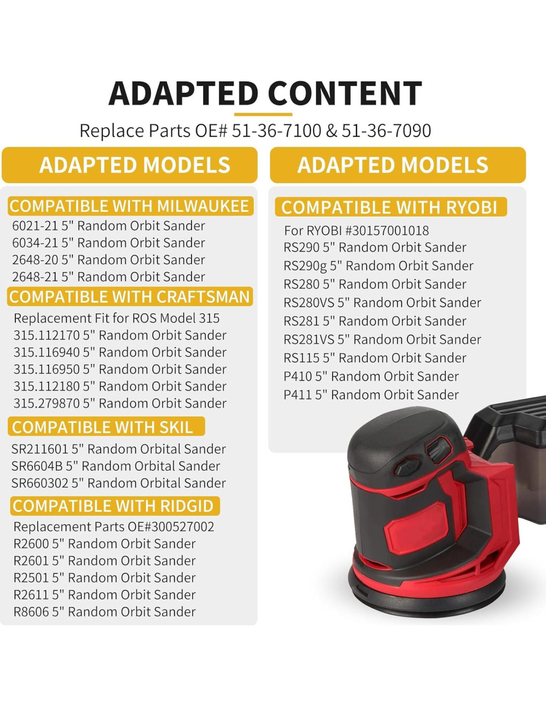 - [Modelos Compatibles] Almohadilla de Reemplazo para Lijadora para Milwaukee OE# 51-36-7100 compatible con Milwaukee 6021-21 6034-21 2648-20 2648-21 lijadoras orbitales de 5"