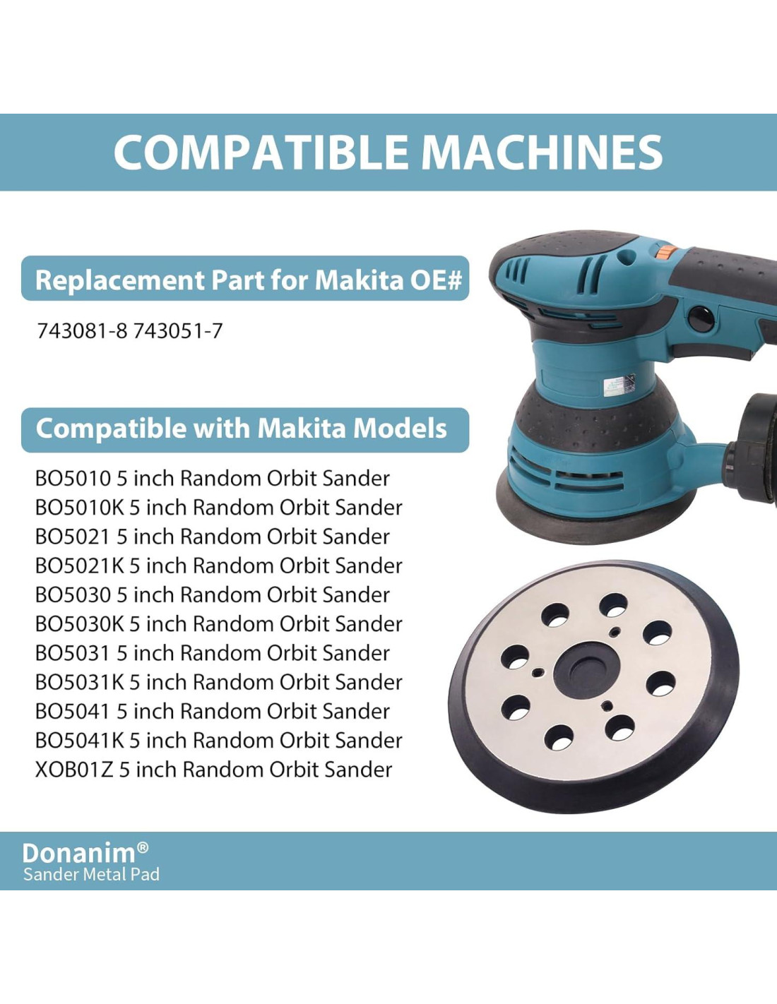 - MÁQUINAS COMPATIBLES: La almohadilla de lijadora orbital es un reemplazo para el número de parte 743081-8 743051-7, la almohadilla de respaldo de lijadora es compatible con Makita BO5010 BO5010K BO5021 BO5021K BO5030 BO5030K BO5031 BO5031K BO5041 BO5041K XOB01Z lijadora orbital aleatoria de 5 pulgadas