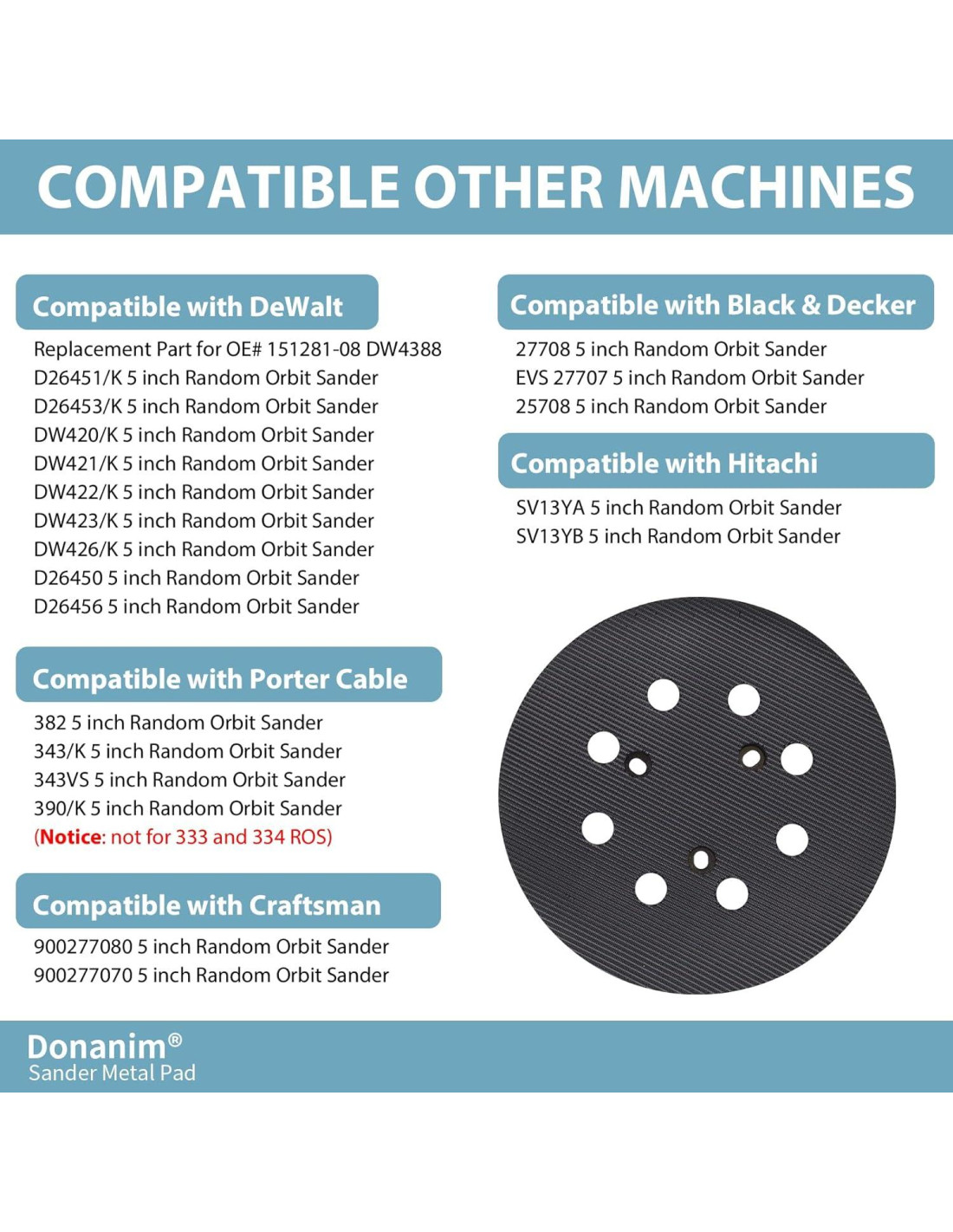 - MÓDULOS OTROS COMPATIBLES: La almohadilla de lijadora orbital también es compatible con DeWalt 151281-08 DW4388 D26451 D26453 DW421, almohadilla de respaldo compatible con Porter Cable 382 343 390, almohadilla de lijadora compatible con Craftsman 900277080 900277070 lijadora orbital aleatoria