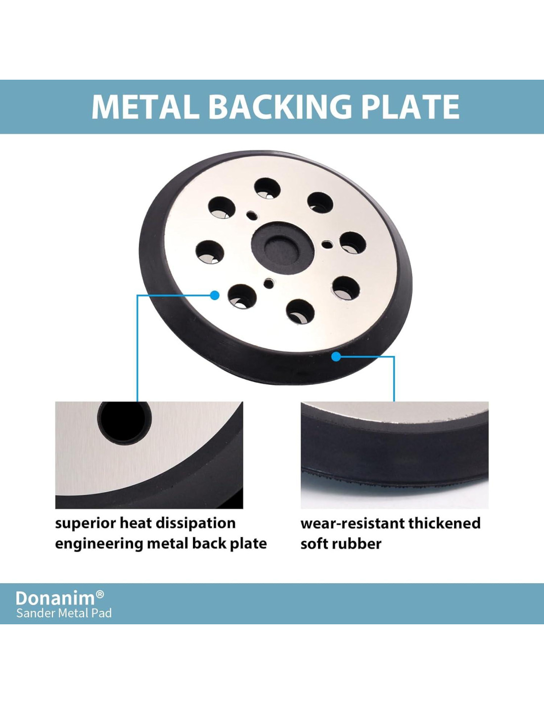 - PLACA DE RESPALDO METÁLICA: La almohadilla de reemplazo de lijadora de 5 pulgadas tiene un panel trasero de metal de ingeniería engrosado, resistencia a altas temperaturas, el rendimiento de disipación de calor es mejor que el plástico, reduce el riesgo de sobrecalentamiento, puede terminar mejor tu trabajo de pulido