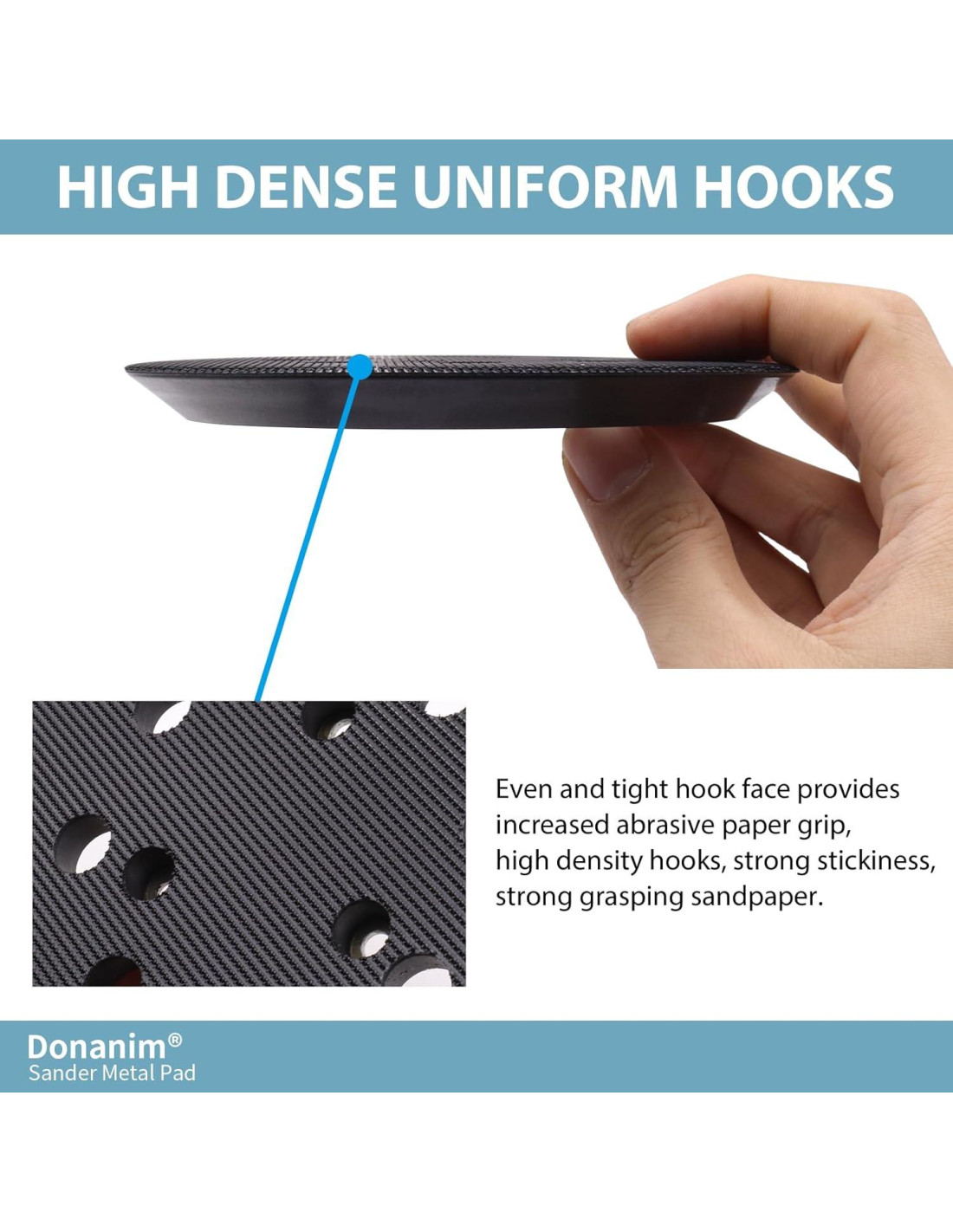 - GANCHOS DENSOS: La almohadilla de reemplazo de lijadora metálica adopta una cara de gancho uniforme y ajustada que proporciona un mayor agarre del papel abrasivo, fuerte pegajosidad, fuerte agarre del papel de lija, ya no tienes que preocuparte de que el papel de lija salga volando, se pierda o se dañe en el trabajo