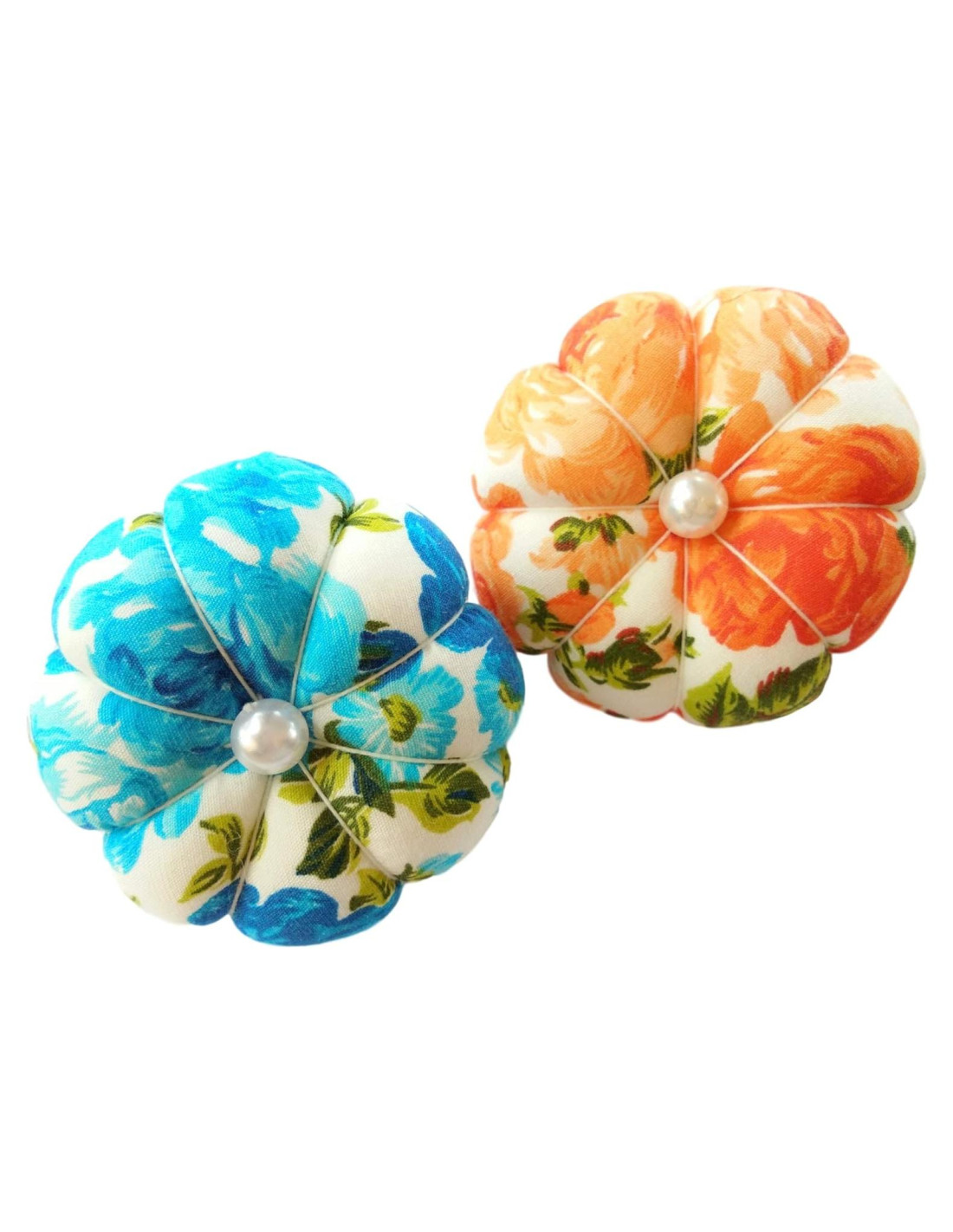 - ALMOHADILLAS DE AGUJAS EN FORMA DE CALABAZA FLORAL PEQUEÑA HECHAS DE Tela de algodón con poliéster sintético en el interior