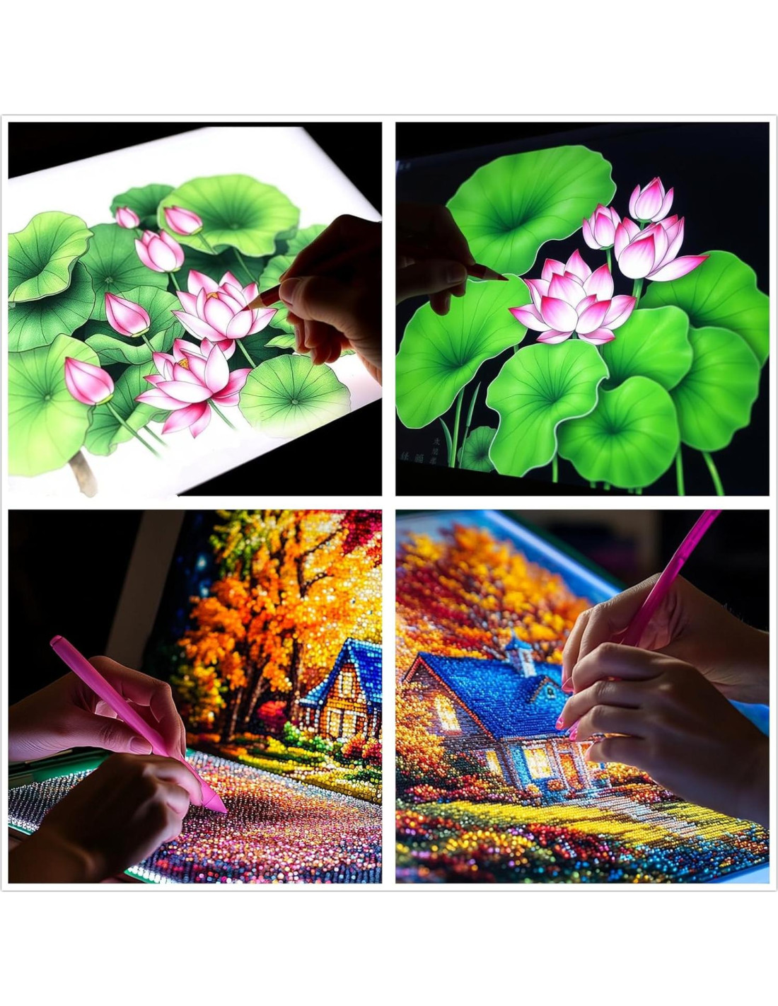 - AMPLIO TABLERO DE LUZ LED A2 (60cm x 40cm) - Amplio espacio para grandes pinturas de arte de diamante o carteles. No más mover proyectos a mitad de tarea, concéntrate en patrones complejos con precisión ininterrumpida.