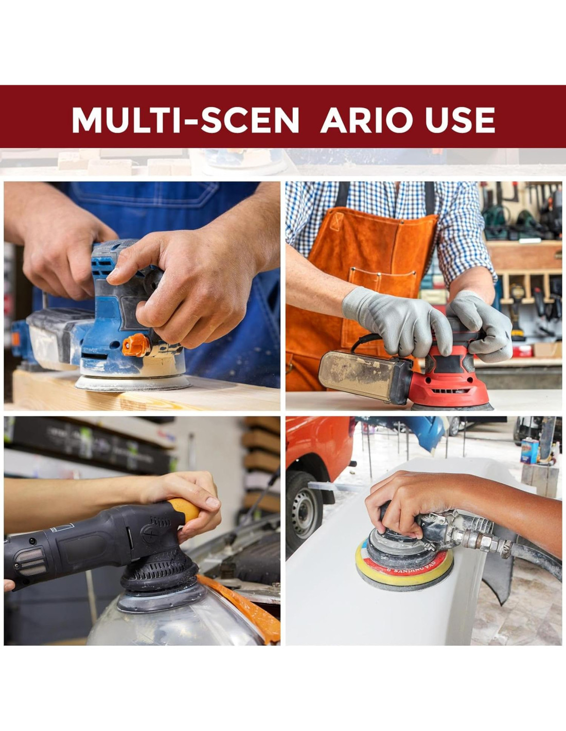 - Tamaño de especificación: almohadilla de lijado orbital de reemplazo de 5 pulgadas y 8 agujeros con 3 agujeros de tornillo y 8 agujeros de polvo, agujero central de 1.1 in (28 mm) de diámetro en la parte posterior, agujeros de tornillo de 0.35 in (9 mm) de diámetro, agujeros de polvo de 0.47 in (12 mm) de diámetro, y 1.06 in (27 mm) de distancia entre agujeros de tornillo adyacentes