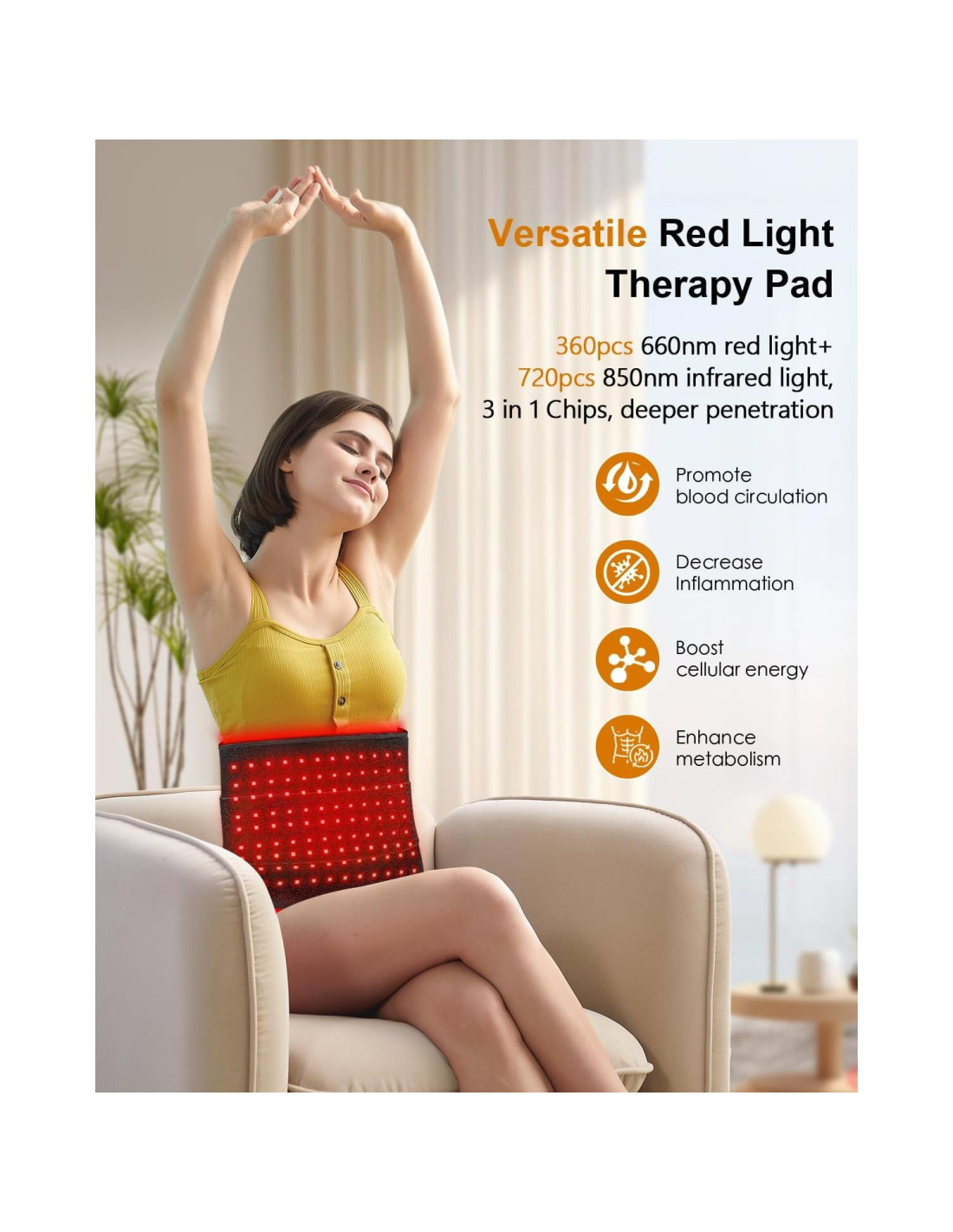 - LUZ ROJA MEJORADA: La almohadilla de terapia de luz roja SHEVIEW de 360PCS con beads LED mejorados 3 en 1 ofrece notables beneficios para la salud. Presenta una combinación de luz roja e infrarroja de alta potencia. La luz roja de 660nm puede estimular la reparación celular y mejorar la condición de la piel, y la luz infrarroja de 850nm penetra profundamente y causa efectos térmicos para acelerar la circulación sanguínea, aliviar el dolor y relajar la tensión muscular.