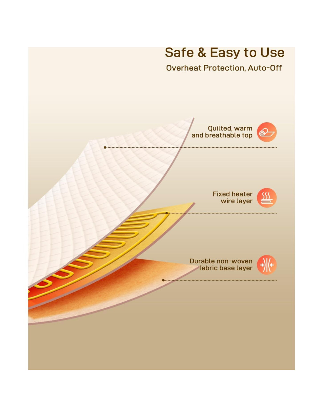 - [Construcción de Múltiples Capas de la Almohadilla Térmica]: Esta almohadilla térmica cuenta con una superficie transpirable y suave, con elementos calefactores distribuidos uniformemente que aseguran un calor rápido y uniforme mientras resisten la electricidad estática.