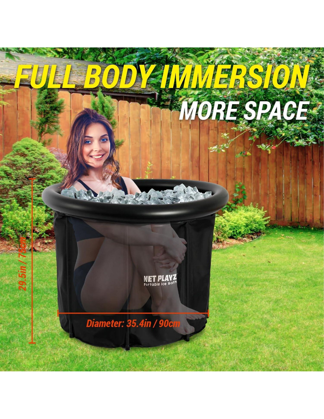 - Diseño Espacioso para Máxima Comodidad - Disfruta de una experiencia de inmersión total con nuestra Tina Fría de tamaño generoso. Midiendo H29.5 pulgadas (74,93 cm) x Diá. 35.4 pulgadas (89,92 cm), proporciona amplio espacio para que atletas de todas las alturas se ajusten cómodamente y obtengan los beneficios de la terapia de agua fría.