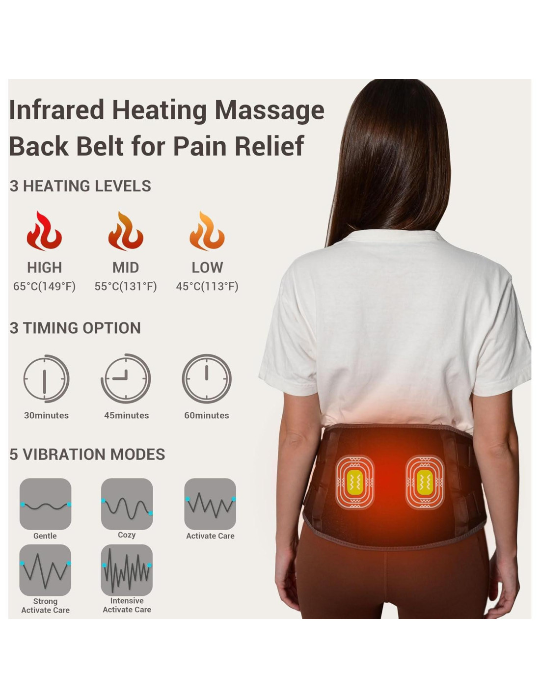 - [Hasta 66 Pulgadas (incluye cinturón de extensión de 19 pulgadas)] La almohadilla térmica masajeadora para la espalda (47 pulgadas) viene con una banda de extensión separada (19 pulgadas) que se estira hasta 66 pulgadas en total, permitiendo un ajuste ajustable alrededor de varias cinturas.