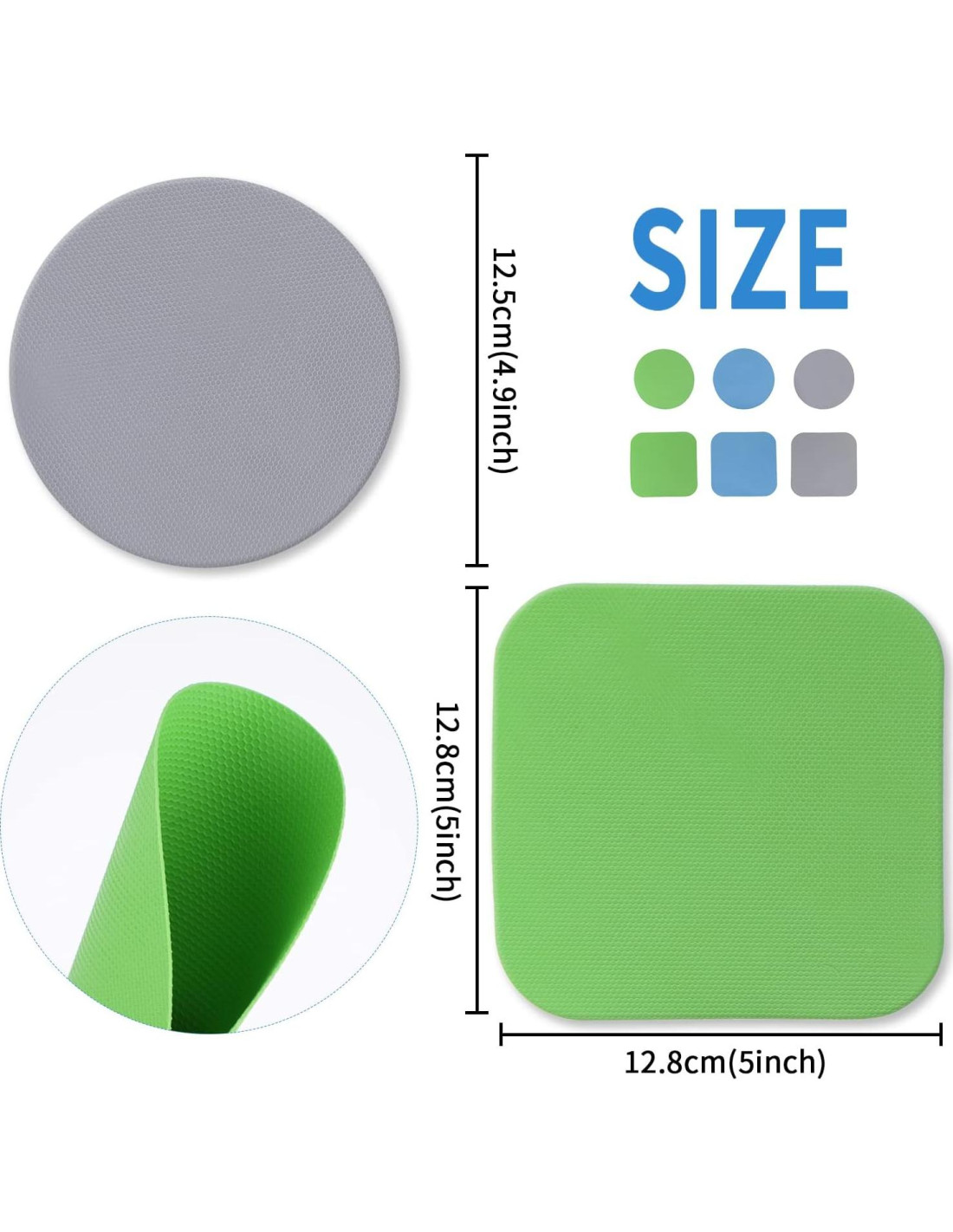 - Fácil de Usar: El diámetro de la almohadilla de agarre cuadrada es de aproximadamente 12.8x12.8cm (5x5 pulgadas), y el diámetro de la almohadilla de agarre redonda es de aproximadamente 12.5cm (4.9 pulgadas). Buen tamaño y fácil de usar. Simplemente coloca las almohadillas de agarre para tarros de goma sobre la botella y gírala en la dirección indicada para abrir fácilmente el tarro. Los abrebotellas de goma te dan un excelente agarre para abrir tarros y recipientes obstinados de todos los tamaños.