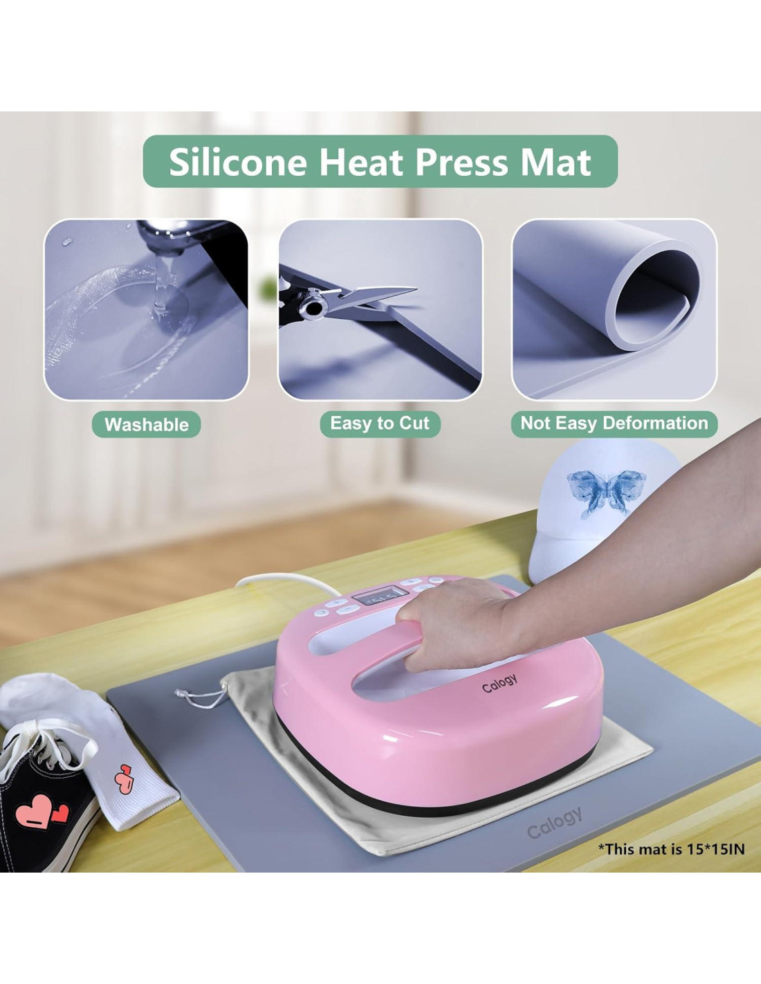 - Fácil de Cortar: Las almohadillas de prensa térmica Calogy se pueden cortar a cualquier tamaño que desees, con solo un par de tijeras, puedes personalizar cualquier tamaño de almohadilla de corte para tu máquina