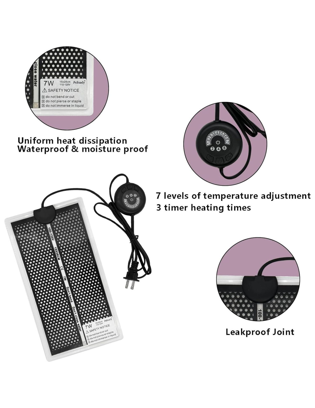 - Material Mejorado, Calentamiento Seguro y Equilibrado - La almohadilla térmica para reptiles PeSandy tiene una distribución de temperatura segura y equilibrada y proporciona calor suave y cálido para tu mascota o cría de insectos. Nota: No coloques reptiles o insectos directamente sobre la almohadilla.