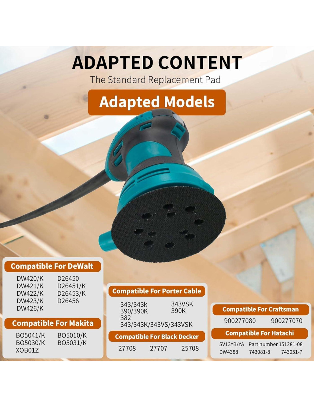 - Almohadilla de Lijadora de Reemplazo Universal: Almohadilla de Respaldo de Gancho y Bucle de 5 Pulgadas 8 Agujeros (la almohadilla de reemplazo de 5 pulgadas tiene 3 agujeros para tornillos y 8 agujeros de polvo, los tornillos no están incluidos)