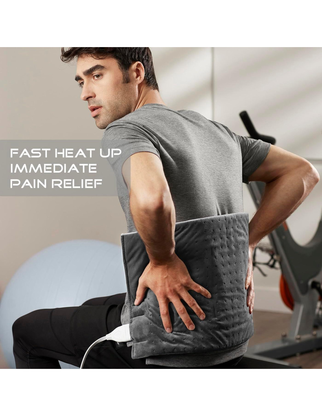 - Alivio del Dolor Corporal Completo: Esta almohadilla térmica XL tamaño Rey de 12 pulgadas x 24 pulgadas es impecable. Cubre una amplia gama de áreas, capaz de tratar incluso tu músculo más grande (hombro, espalda, abdomen). Además, tiene la terapia de calor que necesitas para seguir con tu día. Lo ÚNICO que no le gusta a esta lujosa almohadilla térmica es tu dolor muscular.