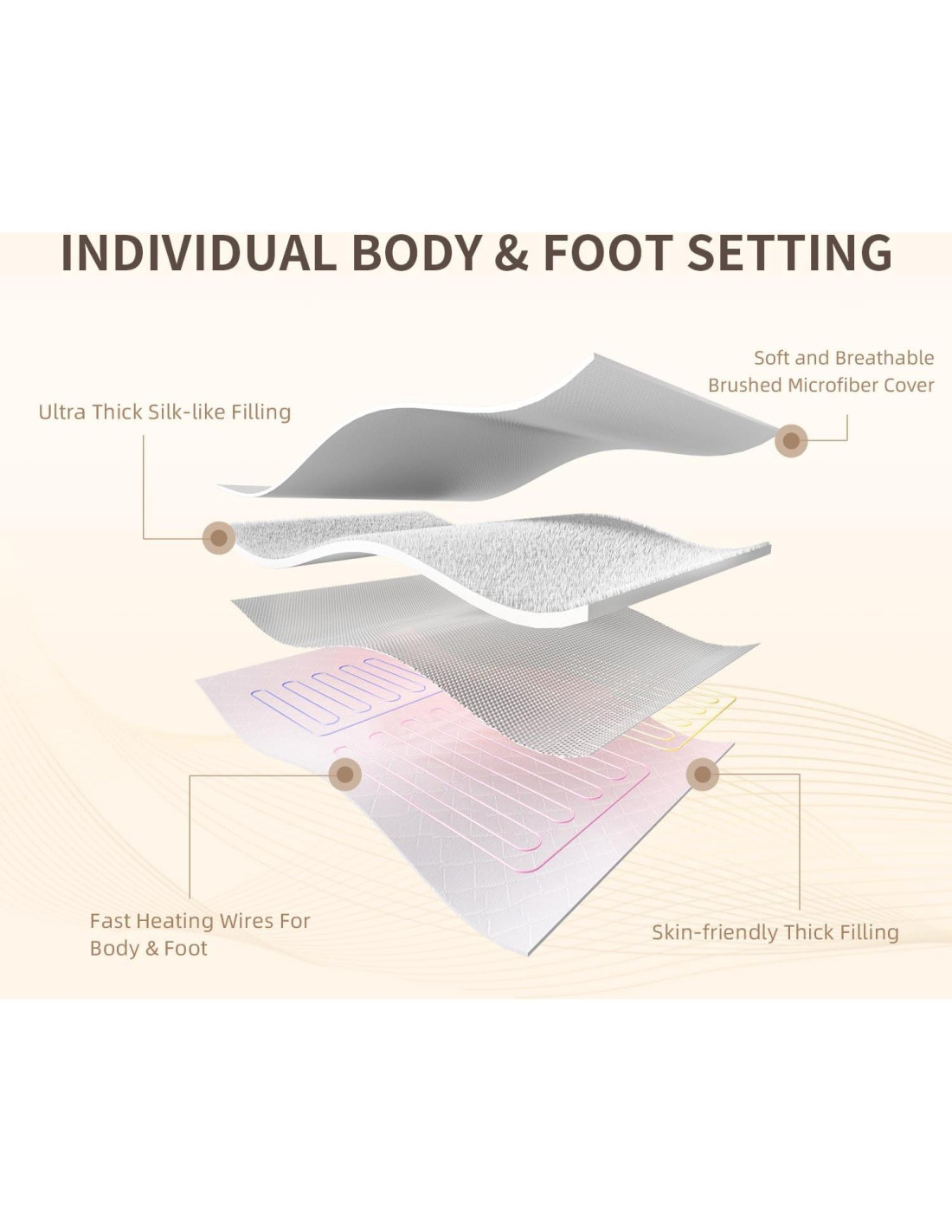 - CALENTAMIENTO MULTI-ZONA: Tamaño Individual, 39 x 75 (99 x 191) La almohadilla de colchón calefaccionada multi-zona proporciona 9 configuraciones de temperatura diferentes de manera independiente para el cuerpo y los pies, manteniendo los pies más cálidos sin sobrecalentar el cuerpo, lo que la hace ideal para aquellos con pies fríos en invierno.
