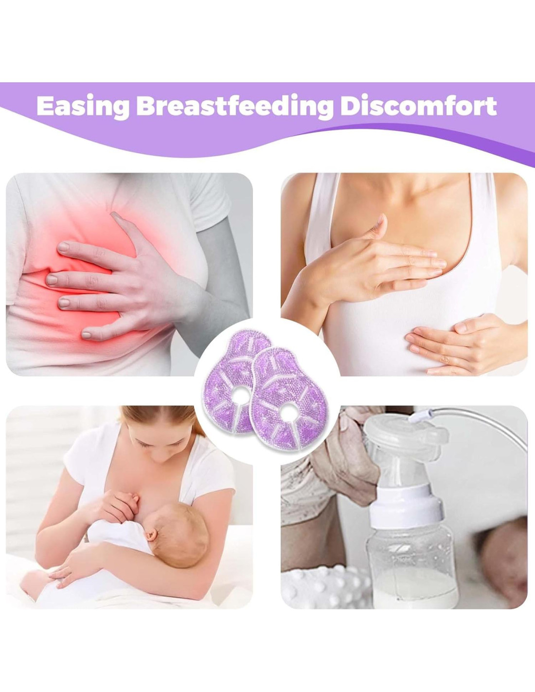 - Alivio del Dolor: Las madres en el posparto siempre tienen sensibilidad en los senos y congestión mamaria, causando que la madre tenga muchos dolores diferentes, el Paquete de Gel para Terapia de Hielo proporciona alivio terapéutico para la lactancia común. La terapia fría puede ayudar a aliviar el dolor asociado con la congestión y la hinchazón, y la terapia caliente puede ayudar con la descarga mamaria y aliviar la mastitis.