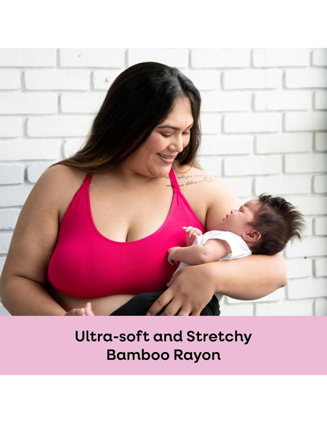 Sostén de Lactancia para Mujeres Bamboobies - Cómodo, Soporte y Diseñado para la Maternidad. Presenta un diseño sin costuras y sin alambres que se adapta a tu cuerpo cambiante. Ya sea que estés amamantando o extrayendo leche, este sostén de maternidad proporciona el soporte que necesitas sin incómodos aros. Ideal para el embarazo, el parto, la lactancia, la extracción y más. Ultra Suave, Elástico y Transpirable. Diseñado para usar todo el día, el tejido ligero y transpirable se adapta a todas tus actividades, ya sea amamantando, extrayendo leche, haciendo ejercicio o tomando una clase de yoga, el diseño sin costuras previene la irritación y se mantiene suave y en su lugar. Acceso Fácil a la Lactancia. Los broches de lactancia de una mano y las copas que se bajan permiten un acceso rápido. Las almohadillas removibles proporcionan cobertura adicional y comodidad personalizable. Estiloso y Funcional. Este sostén de lactancia sin alambres presenta un respaldo con forma de llave y tirantes ajustables con un cierre de gancho y ojo, asegurando un ajuste seguro y cómodo. Cuidado Fácil y Calidad Duradera. Tejido duradero y lavable a máquina hecho de una mezcla de 95% Rayón y 5% Spandex, este sostén de lactancia inalámbrico para mujeres mantiene su forma y suavidad lavado tras lavado. Simplemente lavar a máquina en caliente y secar a baja temperatura o secar al aire para continuar con la comodidad y el soporte.