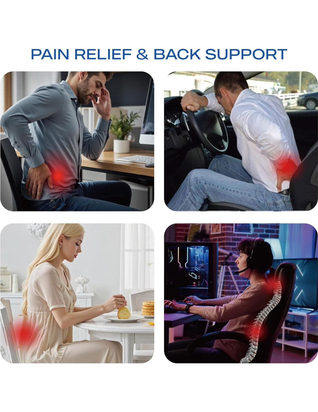 - ALIVIO DEL DOLOR DE ESPALDA BAJA - Diseñada para aliviar el dolor de espalda baja, esta almohada de soporte lumbar es perfecta para largas horas de estar sentado en la oficina, en el coche o en casa. El material de espuma con memoria proporciona un soporte suave pero firme, ayudando a reducir la incomodidad y mejorar tu bienestar general.