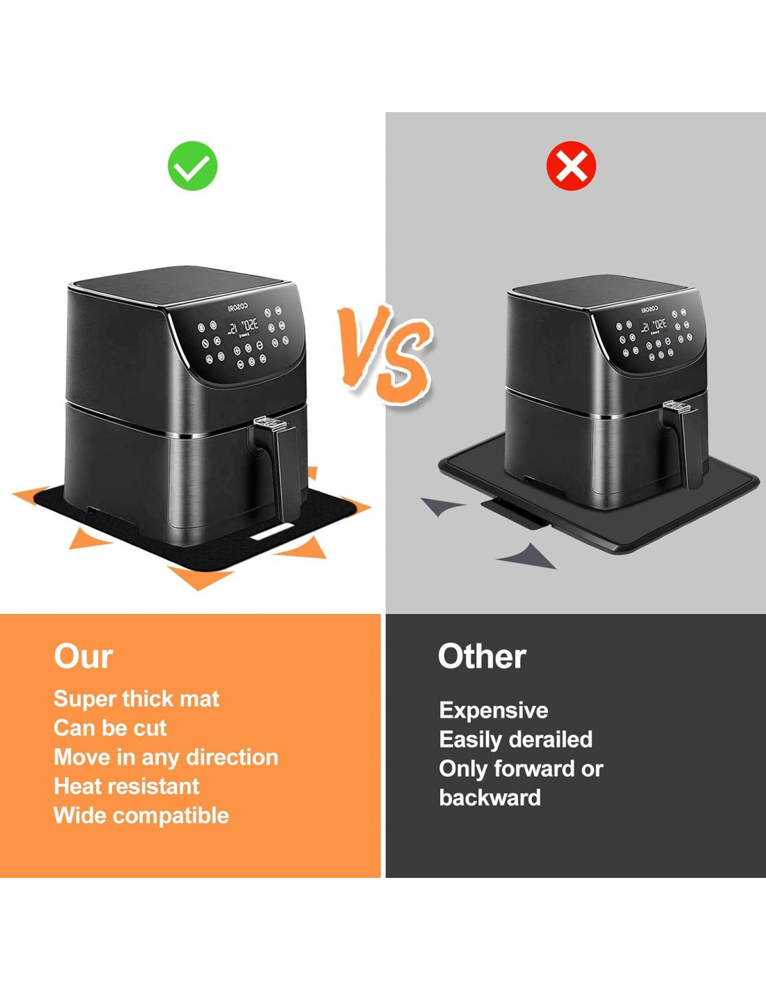 - Cortar para Usar - Estas alfombrillas resistentes al calor para freidora de aire se pueden personalizar mediante corte DIY de acuerdo con la forma real de la base de pequeños electrodomésticos, sin afectar la estética de la apariencia de su máquina, ocultando ingeniosamente la bandeja deslizante.