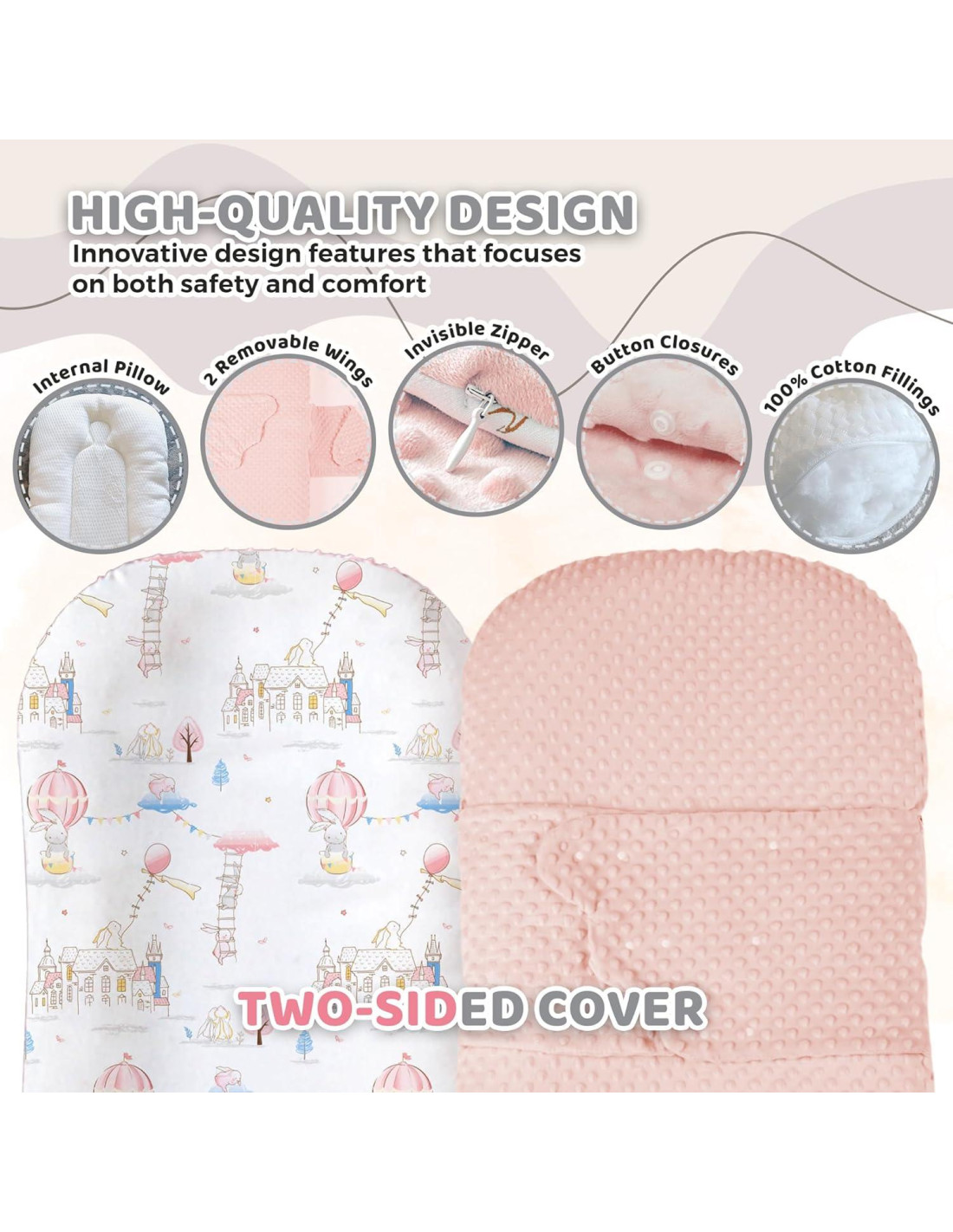 - Mantén a Tu Bebé Seguro y Acurrucado: Con correas anti-susto innovadoras, que abrazan suavemente a tu bebé, nuestro cojín para recién nacidos ayuda a reducir el reflejo de sobresalto. Estas alas removibles proporcionan una sensación extra de seguridad, que se siente como un abrazo, manteniendo a tu pequeño más tranquilo. Recomendamos usarlas después de que tu bebé haya cumplido 5 meses.