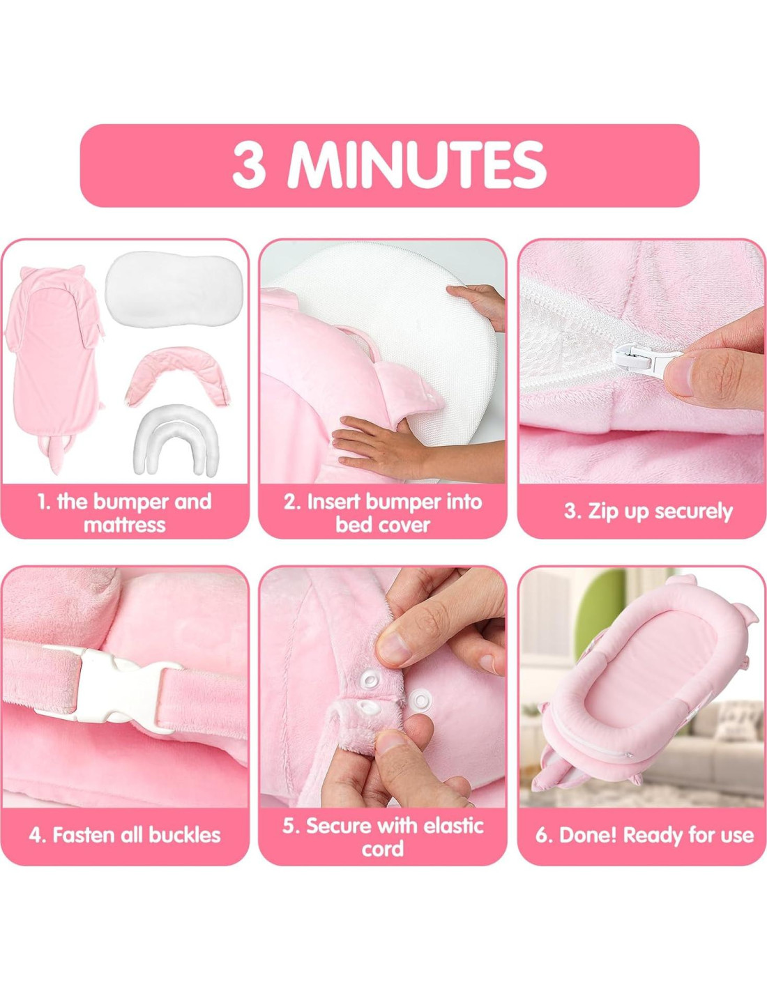 - Desmontable y Fácil de Limpiar Este cojín para bebé incluye dos almohadas que, al unirse, crean asientos para bebés para sentarse. Cuenta con una funda desmontable, lavable a mano o a máquina para una fácil limpieza. Mantiene un espacio limpio y seguro para su recién nacido.