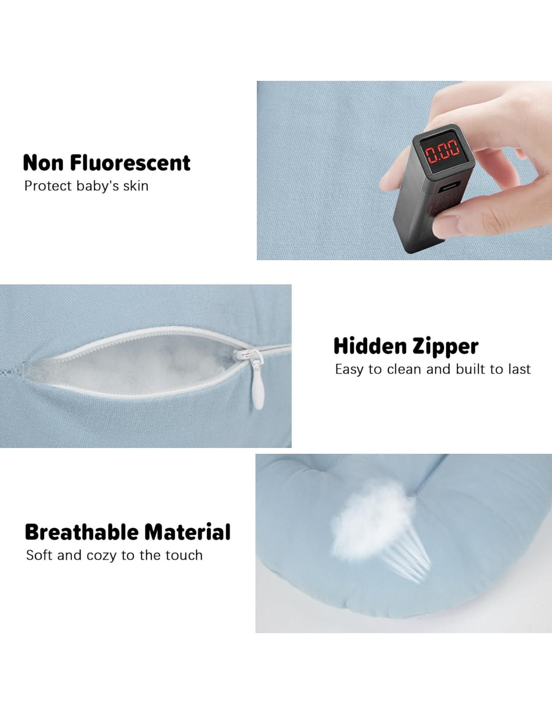 - El cojín para bebés está cubierto con algodón puro super suave y transpirable y 3D poliéster como material de relleno, está certificado por CPC y CPSIA, es seguro para su bebé.