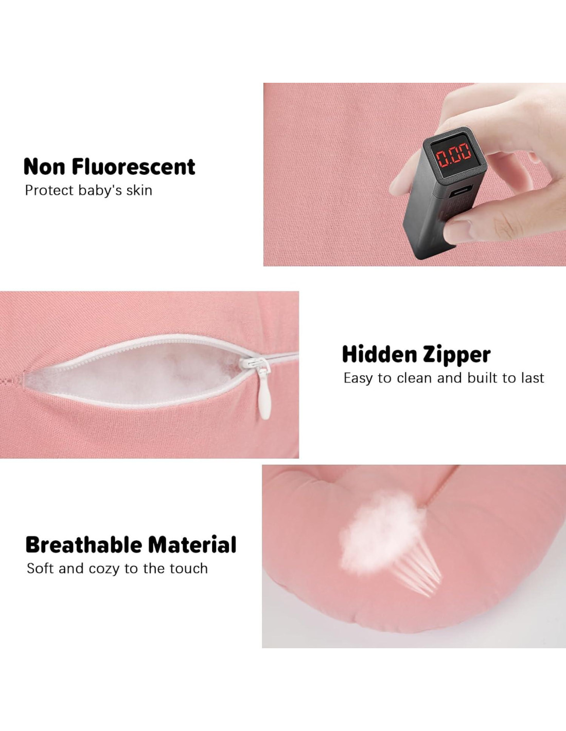 - El cojín para bebés está cubierto con algodón puro super suave y transpirable y poliéster 3D como material de relleno, está certificado por CPC y CPSIA, es seguro para su bebé.
