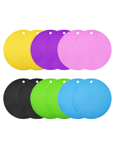 6 Piezas de alfombrillas de silicona, almohadilla térmica, soporte redondo para olla, reposaplatos y almohadillas para agarrar frascos, 7 x 7 pulgadas (18 x 18 cm) Característica: La alfombrilla de trivet de cocina está hecha de PVC suave, la forma es patrón de panal y tiene buena función antideslizante. Fácil de almacenar y duradera, se puede enrollar o colgar en un gancho, simplemente lavar a mano y apta para lavavajillas, probada para resistir torsiones y doblados repetidos. Función: Buenas herramientas para el hogar y la cocina para abrir la mayoría de los tipos de botellas y prevenir que tazas, platos y macetas se deslicen, protección contra calor o frío extremo. Aplicar a: Usar como posavasos, se pueden poner posavasos de goma en la mesa de comedor al aire libre, mesa de comedor en casa, cocina, refrigerador, barra, etc. Son lo suficientemente grandes para cualquier tamaño de mano. Especificaciones: Color: multicolor Material: esponja de PVC Diámetro: 7 x 7 pulgadas (18 x 18 cm) El paquete incluye: 6 x Almohadillas de silicona
