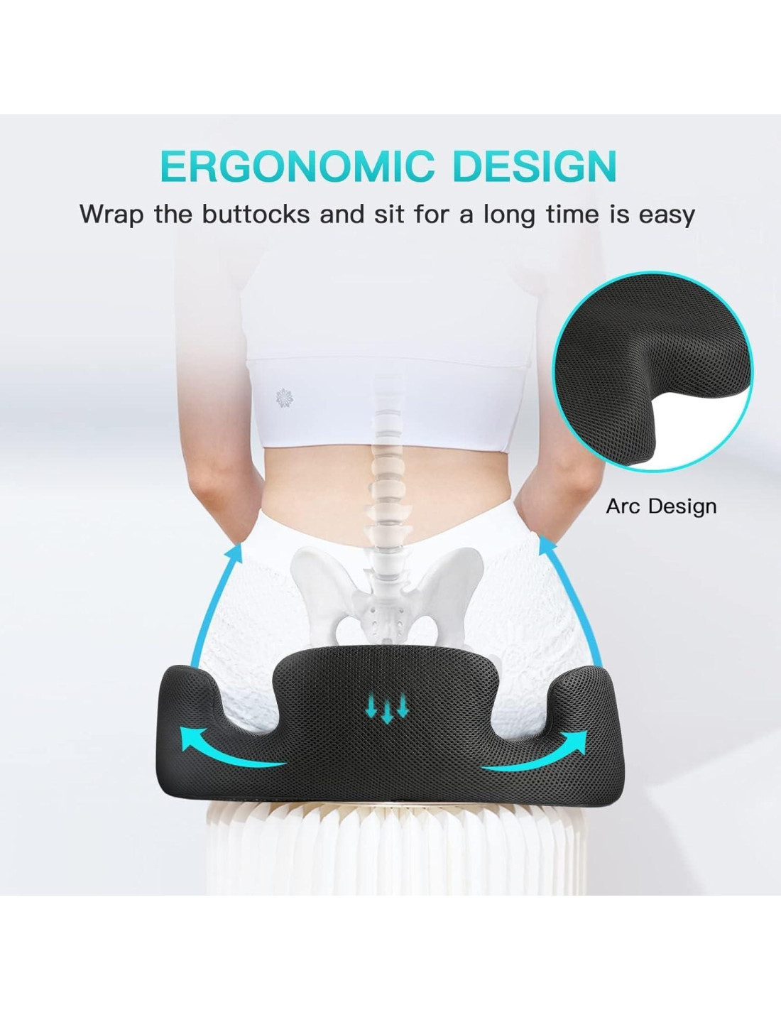 - Alivia el Dolor y Mejora la Postura La forma ergonómica "W" de nuestro cojín proporciona soporte y comodidad mientras reduce la presión en su parte baja de la espalda, cintura y caderas. También ayuda a mejorar su postura, reduciendo el riesgo de dolor e incomodidad.