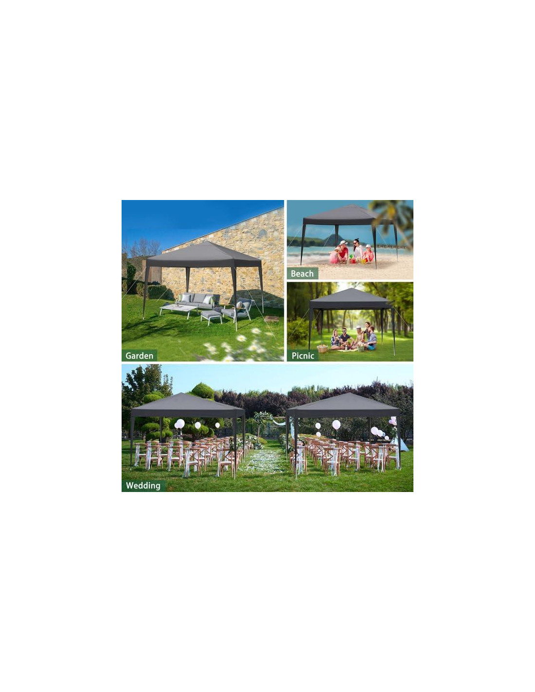 Introducciones: Tu familia tendrá un tiempo maravilloso con esta gran carpa exterior. Con una carpa dura y duradera y postes gruesos y robustos, esta carpa es verdaderamente la máxima en practicidad y conveniencia. Viene con una bolsa de transporte para que puedas llevar la conveniente carpa a cualquier lugar como una solución rápida de cobertura solar. La parte superior de la carpa también tiene un recubrimiento plateado, que es resistente a los rayos UV e impermeable. El marco de acero recubierto en polvo, más grueso y duradero, cuenta con agujeros pre-perforados para que puedas anclarlo si lo deseas. Colócala en tu jardín o en tu patio, o llévala durante el camping, y prepárate para disfrutar de una deliciosa vida al aire libre! Características: 1. Suficiente espacio para ofrecer generosos 9.29 m de sombra para grandes fiestas y eventos 2. Viene con una bolsa de transporte para recoger y mover fácilmente 3. La parte superior de la carpa es resistente a los rayos UV, impermeable y con circulación de aire 4. Marco de acero duradero y robusto recubierto en polvo con agujeros pre-perforados en los pies para anclar 5. Viene con 4 paredes laterales, 4 cuerdas y 8 estacas y otros accesorios necesarios 6. Patas ajustables: 3 posiciones de altura para tu elección Especificaciones: 1. Material: Tela Oxford 420D y metal 2. Color: Parte superior de carpa gris oscuro y paredes laterales y marco blanco 3. Dimensiones Totales: (10'X10'X8.4') / (300X300X255)cm (LxWxH) 4. Peso: 26.7 lbs / 12 kg 5. Impermeable: Sí Paquete Incluye: 1 x Gazebo 1 x Instrucciones de Montaje NOTA: 1. ¡Mantén la carpa alejada del fuego! 2. ¡Por favor, no uses la carpa en lluvia intensa o contra viento fuerte!
