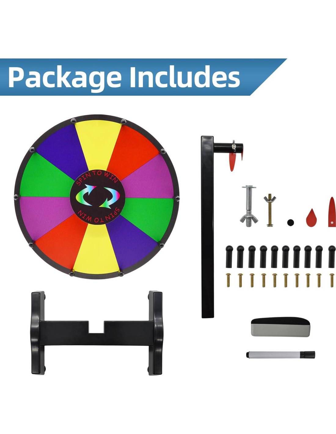 - El kit de rueda de premios de SCZS incluye 1 rueda giratoria de color de 12" con 10 segmentos, 1 marcador borrable y 1 goma de borrar. Es fácil de ensamblar con las instrucciones paso a paso.