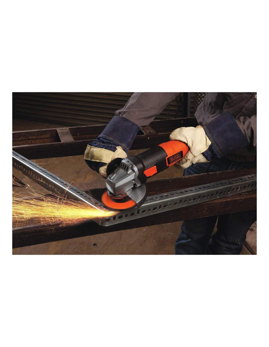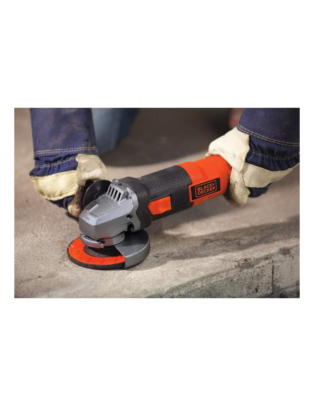 La Black & Decker BDEG400 4-1/2" 6.5 Amperios Amoladora Angular es ideal para afilar, cortar, moler, eliminar óxido y preparación de superficies. Esta amoladora cuenta con una caja de engranajes de metal para durabilidad y mayor vida útil. Ofrece un mango lateral de 3 posiciones que proporciona mayor comodidad y control para su uso con varios materiales y ángulos. También tiene un bloqueo del husillo para cambios de accesorios fáciles. Funciona a 10,000 rpm, con un rango de tamaño de husillo de 5/8" - 11 ". Incluye: (1) Amoladora angular pequeña de 4-1/2", (1) Disco de molienda de metal, (1) Llave de spanner.