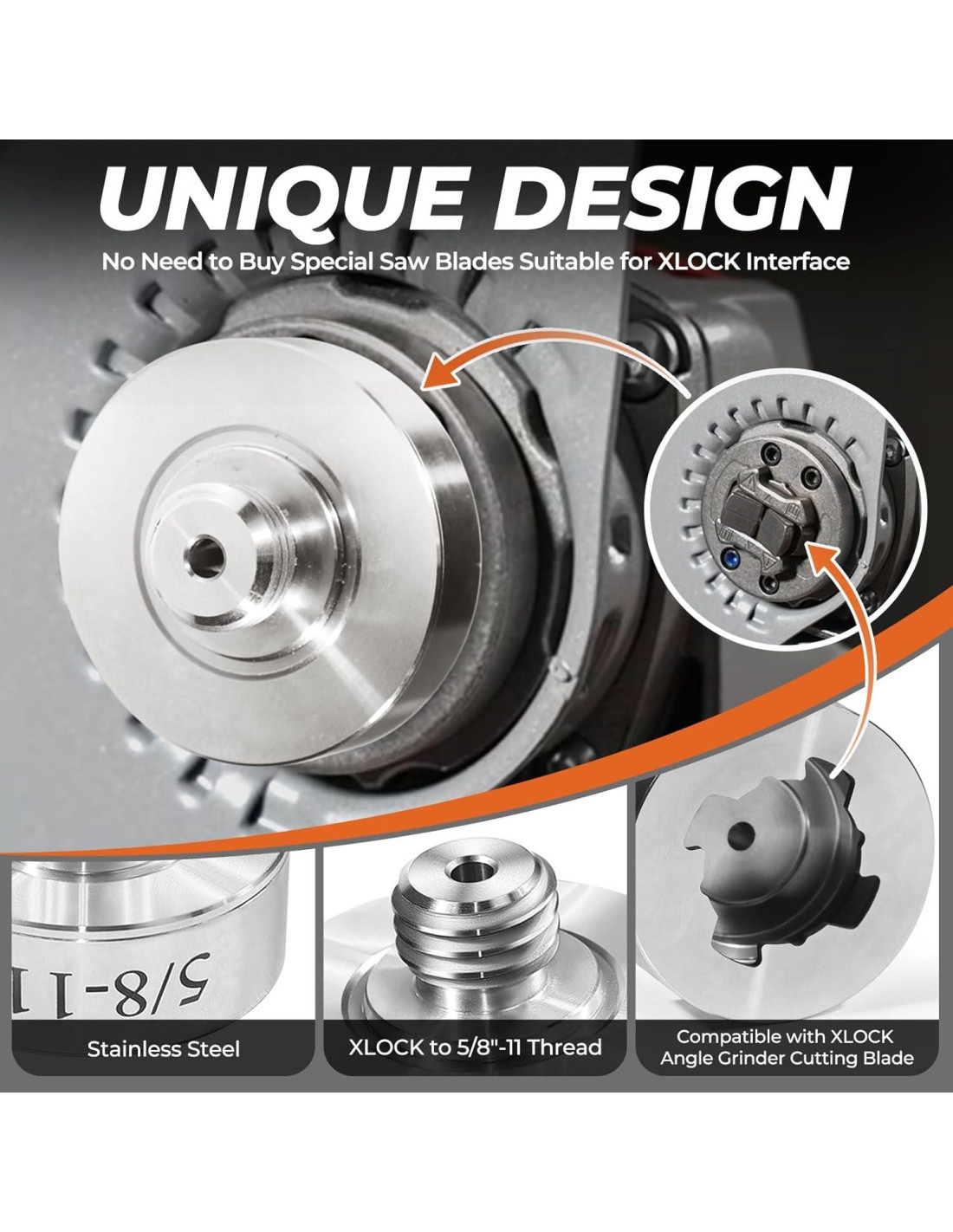 - Adaptador de Amoladora Angular 5/8"-11: El diseño de forma de apertura única permite que el adaptador se fije de manera ajustada y firme en la amoladora angular, lo que no se aflojará después de un uso prolongado y es compatible con herramientas de máquina angulares XLOCK