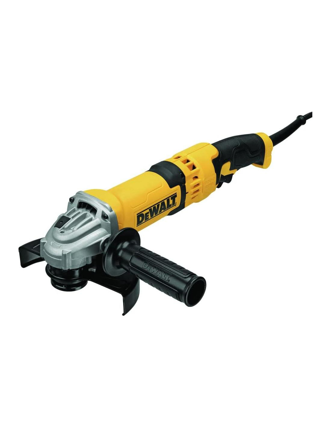 La DWE43116 amoladora manual de alto rendimiento de 4-1/2 pulgadas a 6 pulgadas con agarre de gatillo es impulsada por un motor de 13 amperios y equipada con la tecnología del Sistema de Eyección de Polvo diseñado para proteger la herramienta amoladora de polvo y escombros dañinos que entran a través de las rejillas de entrada de aire.