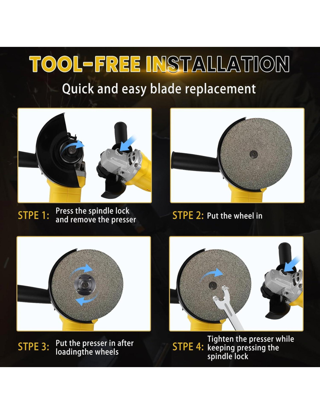 - Diseño Amigable para el Usuario: Esta Herramienta de Amoladora Inalámbrica es Más Rápida con un Bloqueo del Eje que Permite Cambiar el Disco de Rueda. Además, el Mango es Ajustable para Acomodar Tanto a Usuarios Zurdos como Diestros. La Cubierta Protectora de la Amoladora Lateral Evitará Chispas y Virutas de Metal Durante su Uso para Protegerlo de Lesiones.