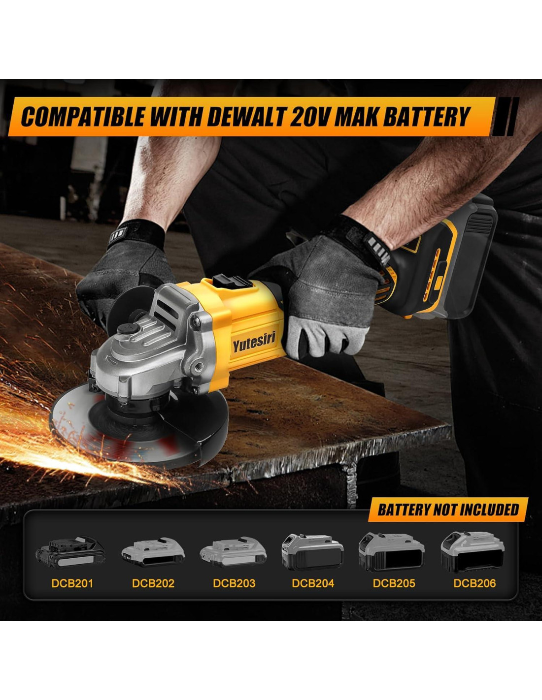 - [Amoladora Angular Inalámbrica] La Amoladora Angular Inalámbrica Yutesiri es compatible con baterías LITIO-ION de Dewalt de 20V para DCB200 DCB201 y más, lo que la hace extremadamente portátil y sin cable. Proporciona a los profesionales que ya poseen baterías Dewalt de 20V la flexibilidad de usar su batería preferida. Nota: Batería NO Incluida