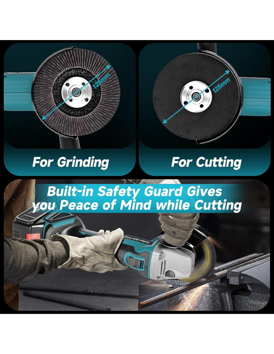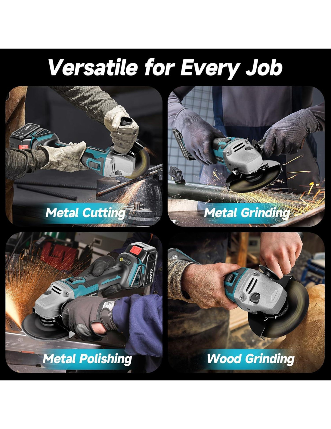 - Herramienta de Amoladora Angular Multifuncional - La amoladora angular de metal de batería Aslsouti está hecha de una cabeza de aluminio, tiene un eje central de 5/8"-11, y es compatible con una rueda universal de 5" (125mm) y todo tipo de cuchillas, discos, ruedas de molienda.