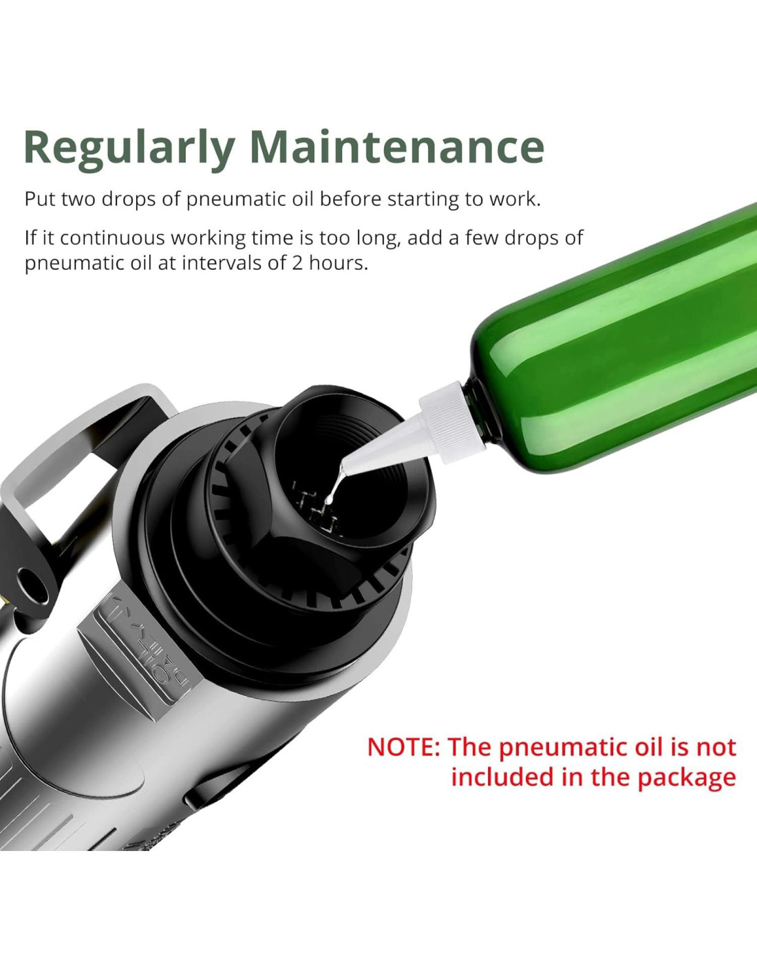 - Nota: Al usar esta herramienta, necesita usar herramientas de protección de seguridad ocupacional, como gafas de trabajo, guantes de trabajo y protección auditiva. Para operar herramientas de aire comprimido, necesita un compresor de aire comprimido o un compresor de tornillo.