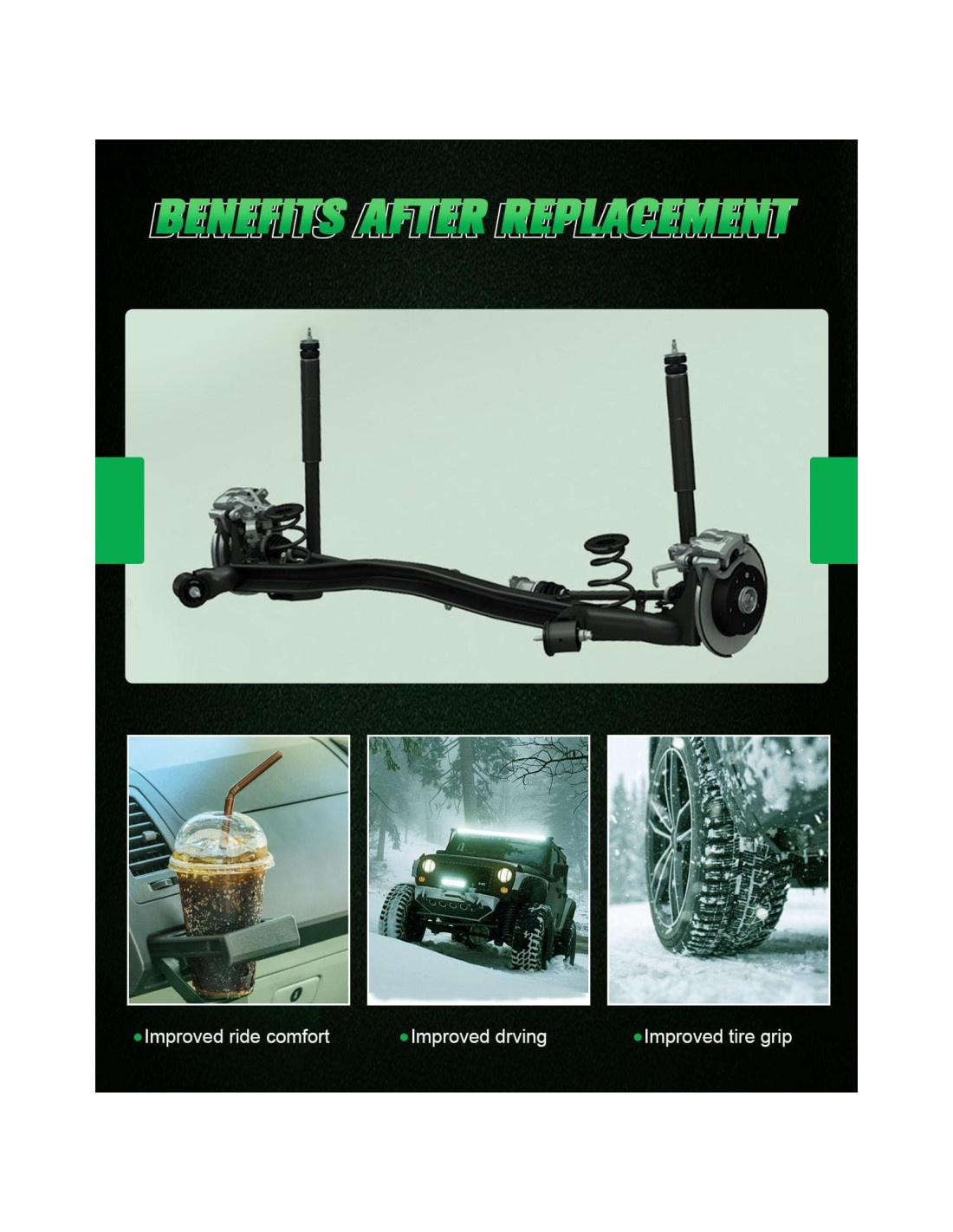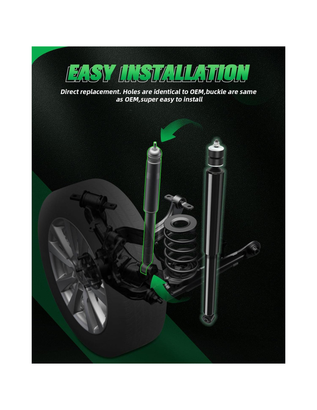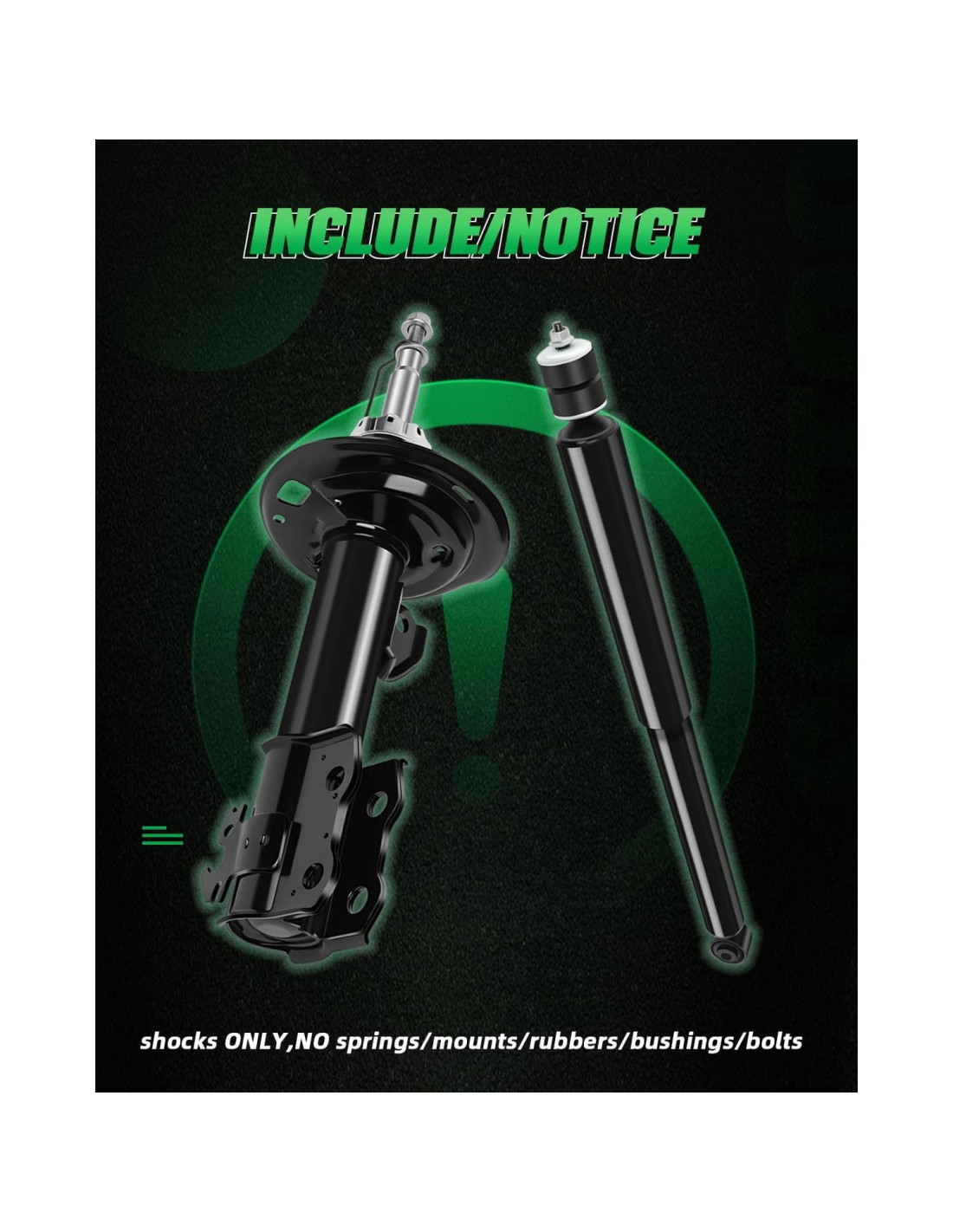 - [CONFIGURACIÓN OFICIAL] - El 1 par de amortiguadores delanteros y 1 par de amortiguadores traseros están diseñados para trabajar juntos, más seguros y más fáciles de instalar, el equipo de servicio al cliente amigable puede resolver sus problemas a tiempo, y puede disfrutar de 12 meses de garantía