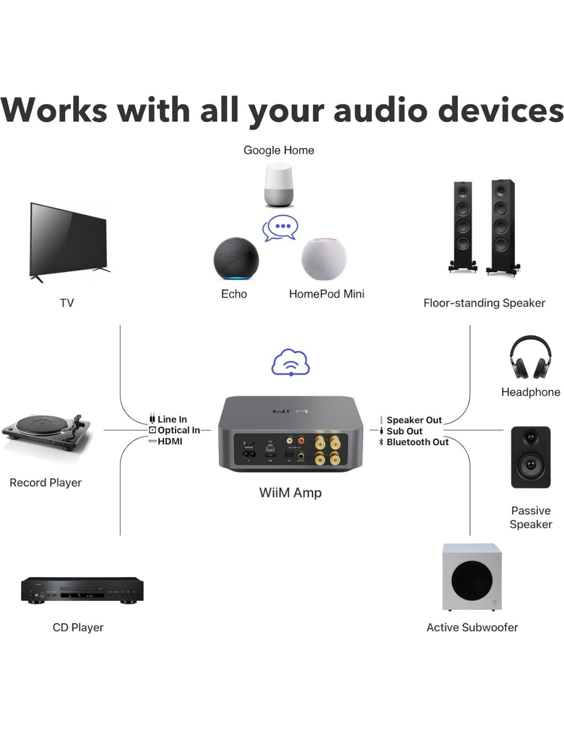 - Audio Multiroom Sin Esfuerzo - Construye sin problemas un sistema de sonido multiroom unificado con tus altavoces AirPlay 2 actuales, Amazon Echo, Google Home y otros dispositivos de marca WiiM. Llena cada habitación con tus melodías favoritas fácilmente.