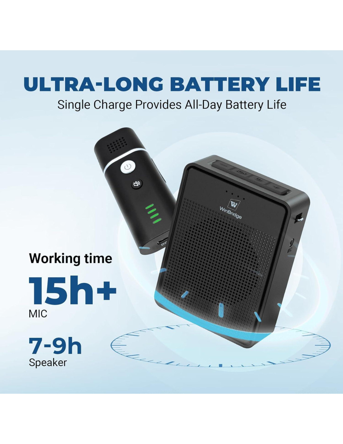 - 4.Rendimiento de Batería Todo el Día y Diseño Ultra-Ligero: El conjunto de micrófono y altavoz recargable ofrece un rendimiento de maratón: más de 15 horas para el amplificador y 7-9 horas para el micrófono. Nuestro diseño ergonómico cuenta con un micrófono portátil clip-on discreto que se mantiene cómodo para un uso prolongado