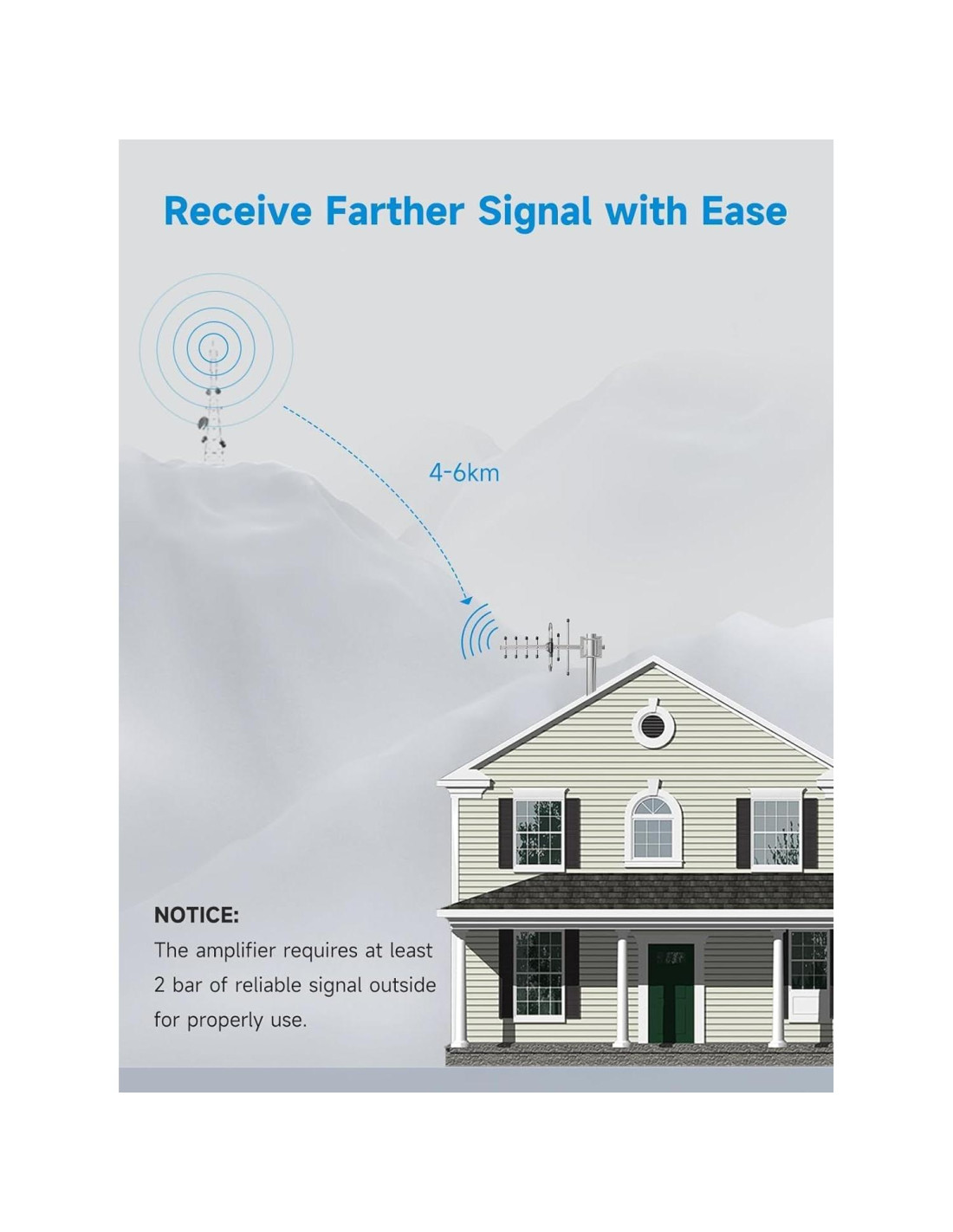 - [AMPLIA COBERTURA] La antena direccional yagi exterior de alta ganancia se enfoca en recibir señales en una dirección particular y proporciona hasta 4,500 pies cuadrados de cobertura, cuanto más barras de señal obtengas afuera, más cobertura obtendrás adentro. Si solo obtienes 1 barra de señal afuera, puedes elegirlo.