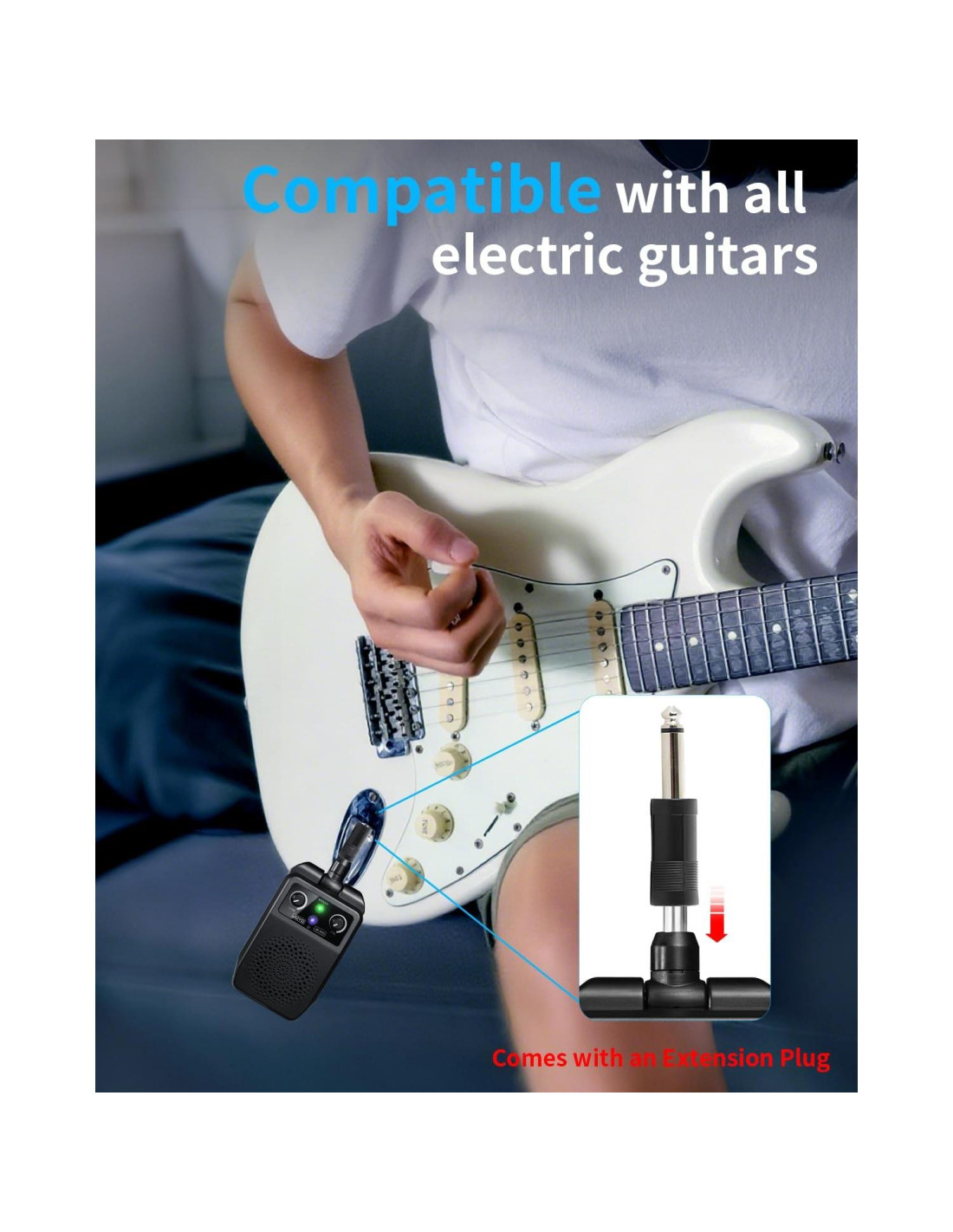 El amplificador mini se adapta a todas las guitarras eléctricas con conector de 6.35mm
