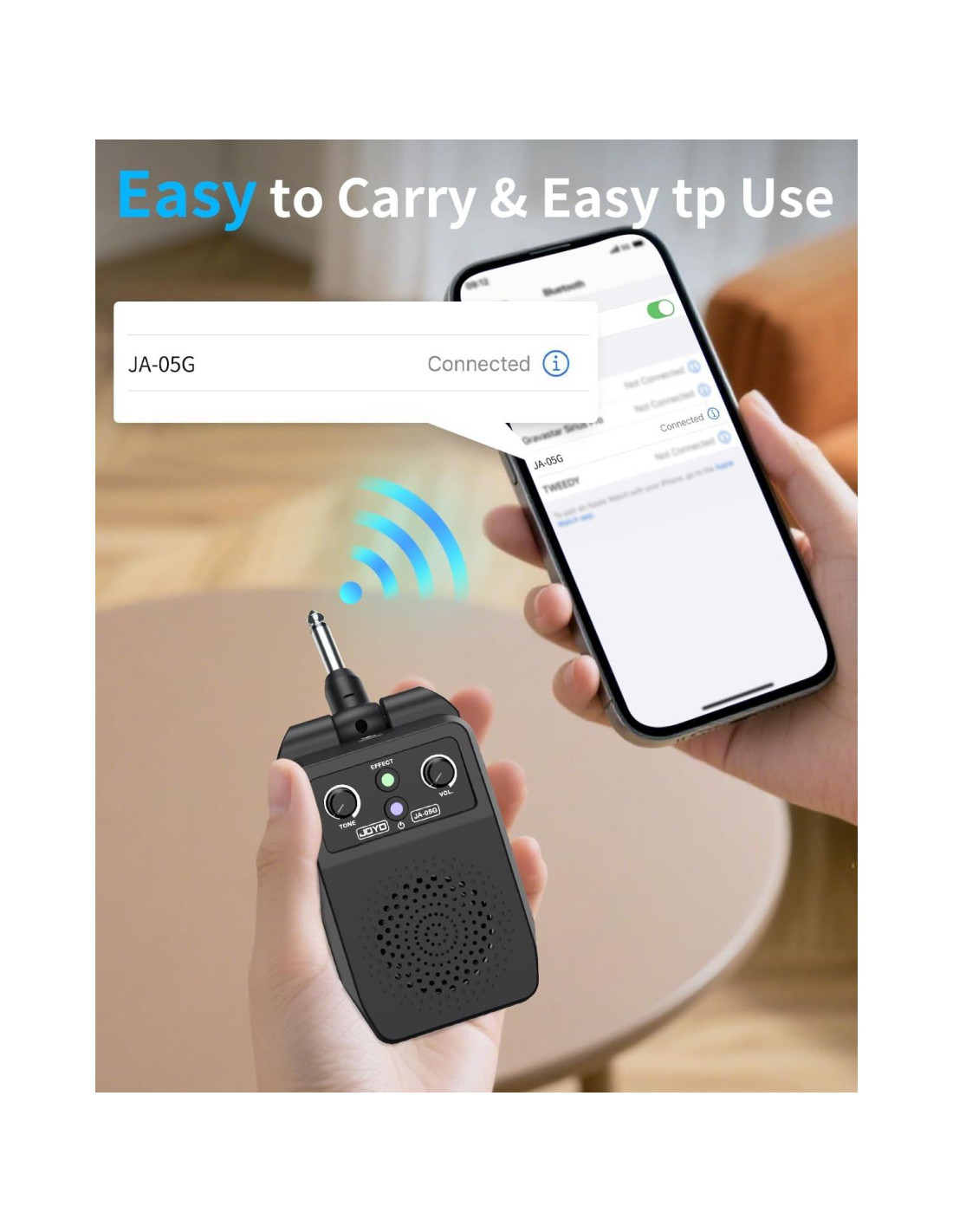 - Buena compatibilidad - Adecuado para todo tipo de guitarras eléctricas con conector de 6.35mm, y también se puede usar para instrumentos de viento electrónicos y más. Más importante aún, para evitar que el conector plegable del amplificador de guitarra pequeño JA-05G sea demasiado corto para usarse con una guitarra tipo Strat, añadimos un conector de extensión al paquete.